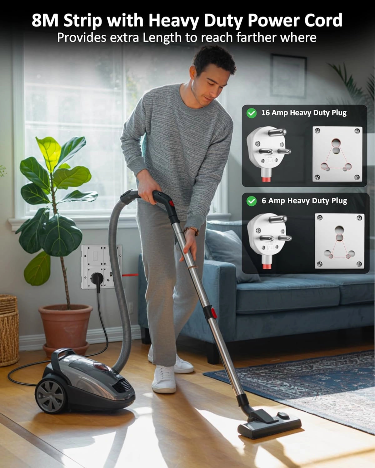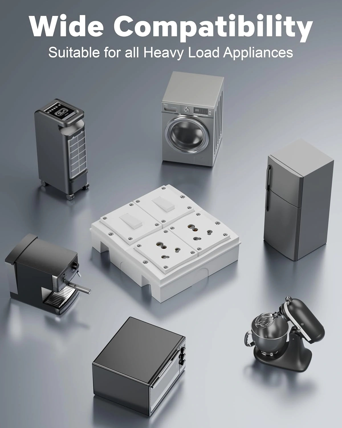 ▶SAFE AND SECURE SHUTTERED SOCKETS FOR ADDED PROTECTION: Shuttered Socket Design for Safety: Each socket is equipped with integrated shutters to prevent accidental electric shocks. This safety feature is particularly useful for homes with children or pets, preventing any unsafe contact with live terminals. Whether you're powering small devices or large appliances, the shuttered sockets provide a high level of security, making it ideal for both residential and commercial use.
