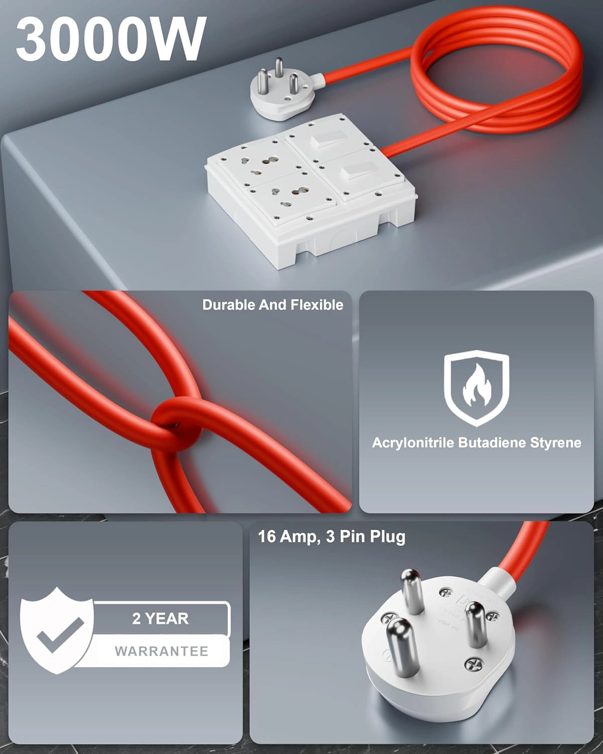 I bought the Fedus 16a 3000w heavy duty extension board for high load appliances like oven, induction, and EV charger. The build quality is excellent and it delivers stable, reliable power every time.