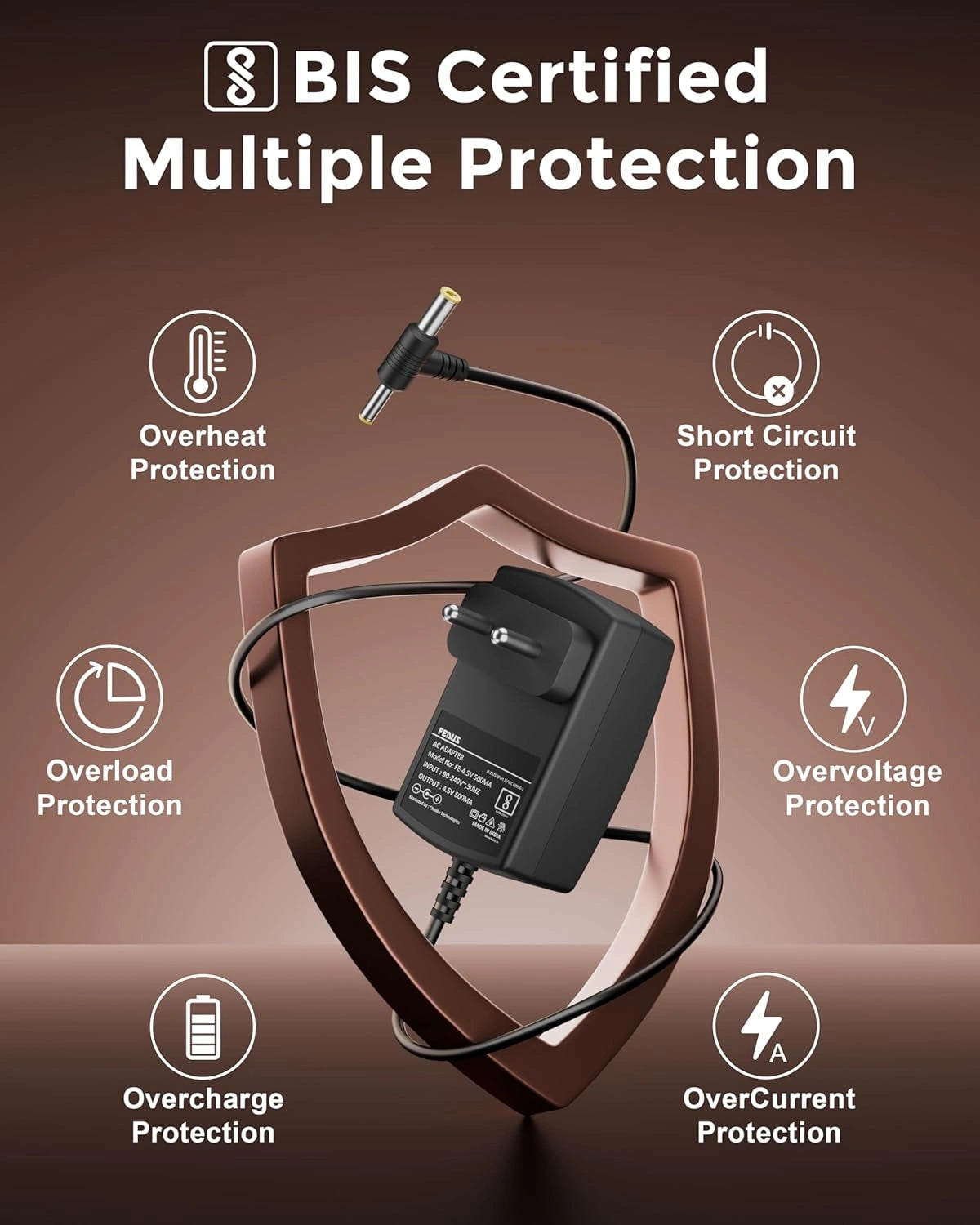 I bought this Fedus 4.5v 500ma charger for my torch light and it working very fine. Charging is fast and no heating issue. The build quality also ok and plug fit properly in socket. I used it for my emergency light also and it charge without any problem. Good product in low price, totally worth it.