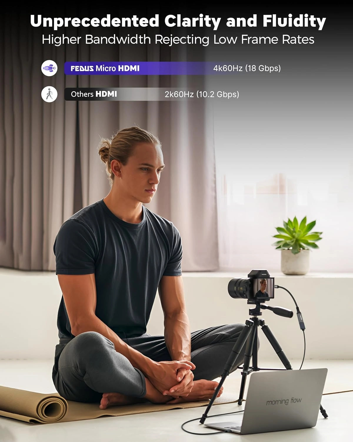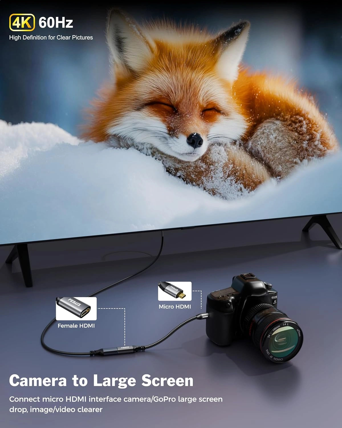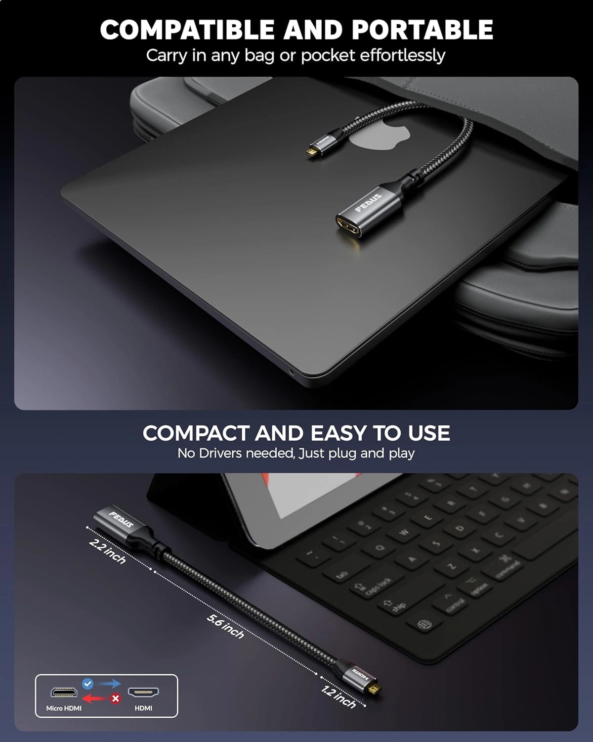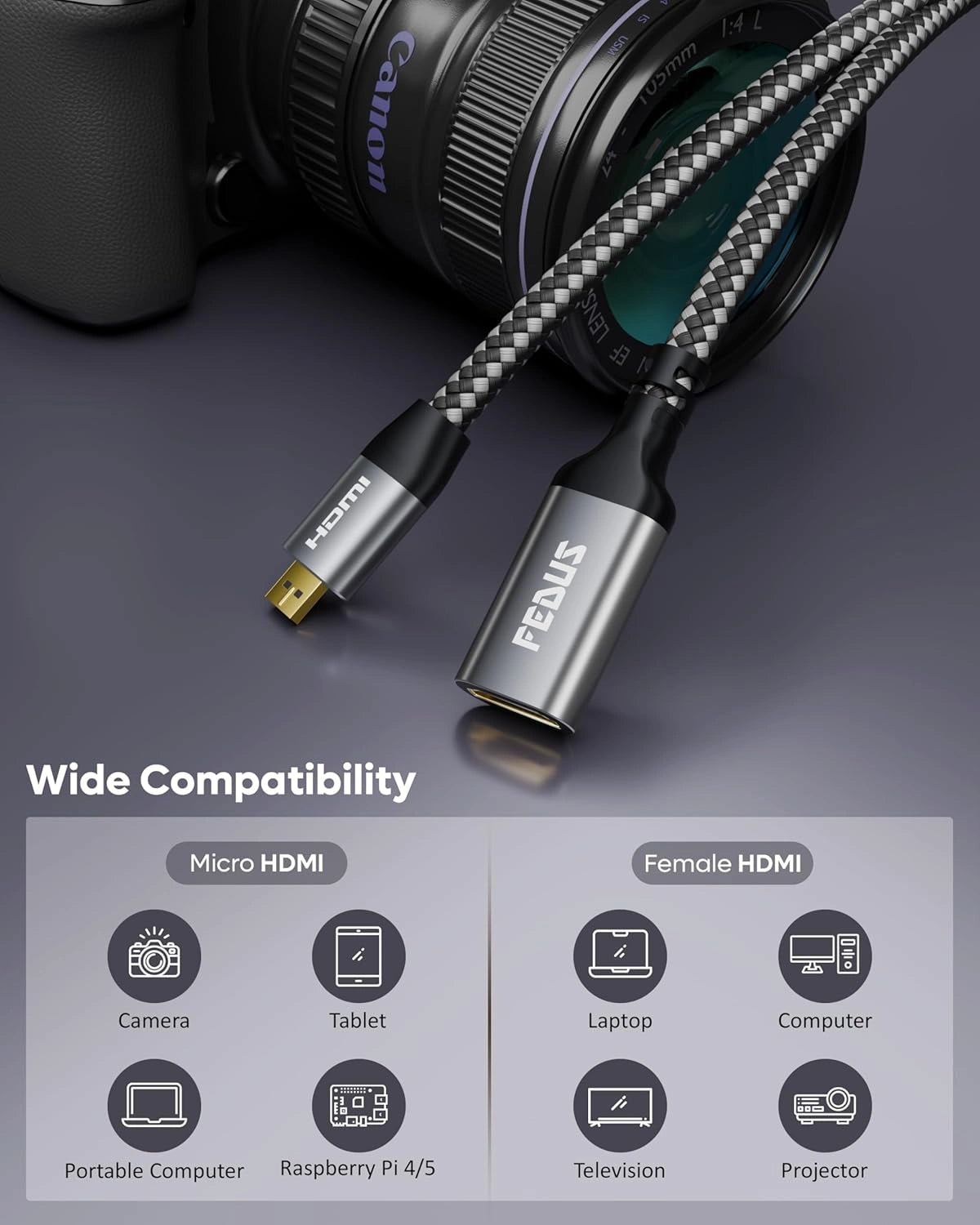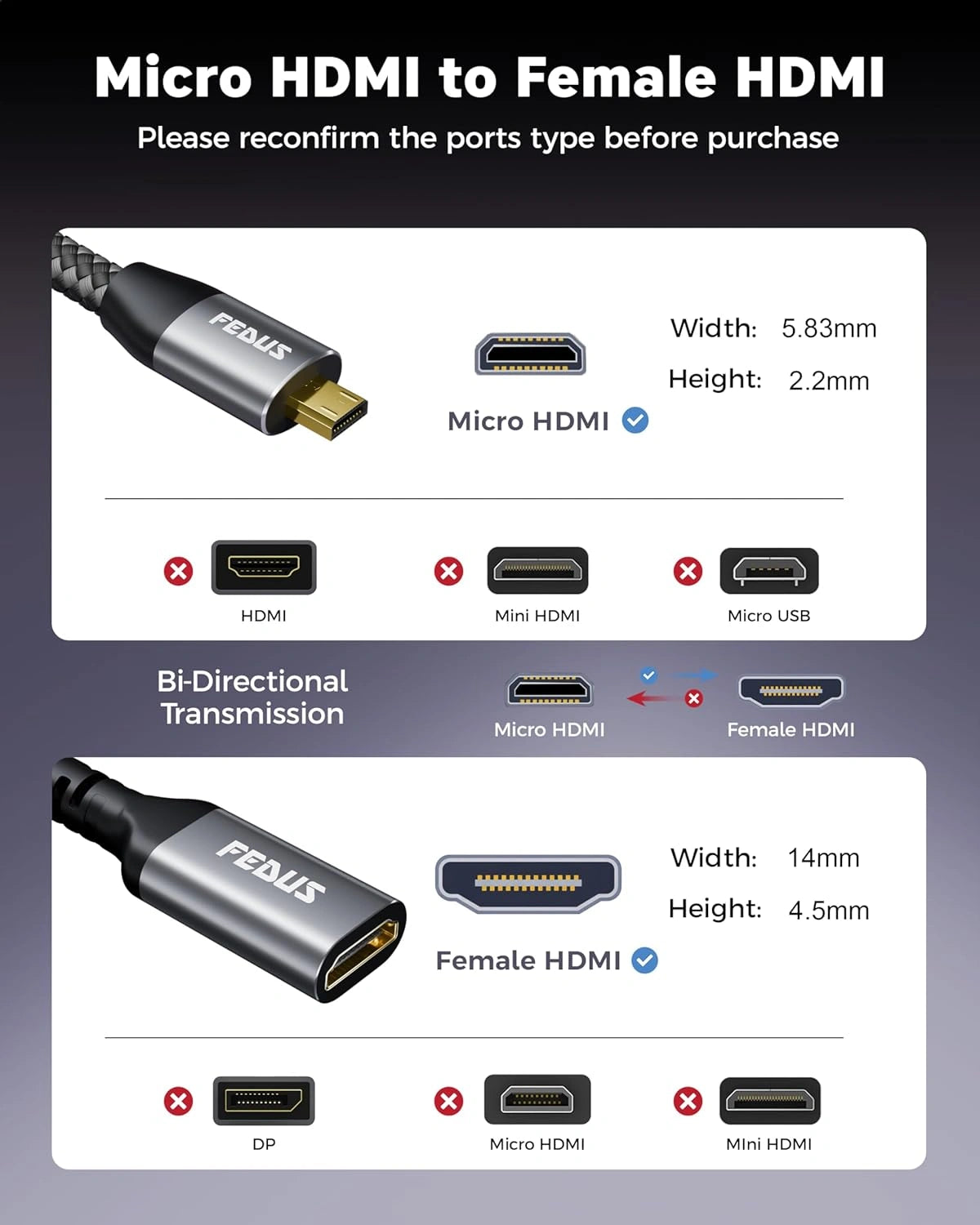 ▶BI-DIRECTIONAL TRANSMISSION FOR MAXIMUM UTILITY: Versatility redefined! Unlike one-way adapters, the FEDUS UltraStream cable supports Bi-Directional transmission. Connect a Micro HDMI source (Camera/Tablet) to an HDMI display, or an HDMI source to a Micro HDMI monitor. This makes it an essential tool for photographers using external monitors, techies working with Raspberry Pi 5, or gamers using portable monitors. One cable, dual functionality—saving you money and clutter in your tech bag.