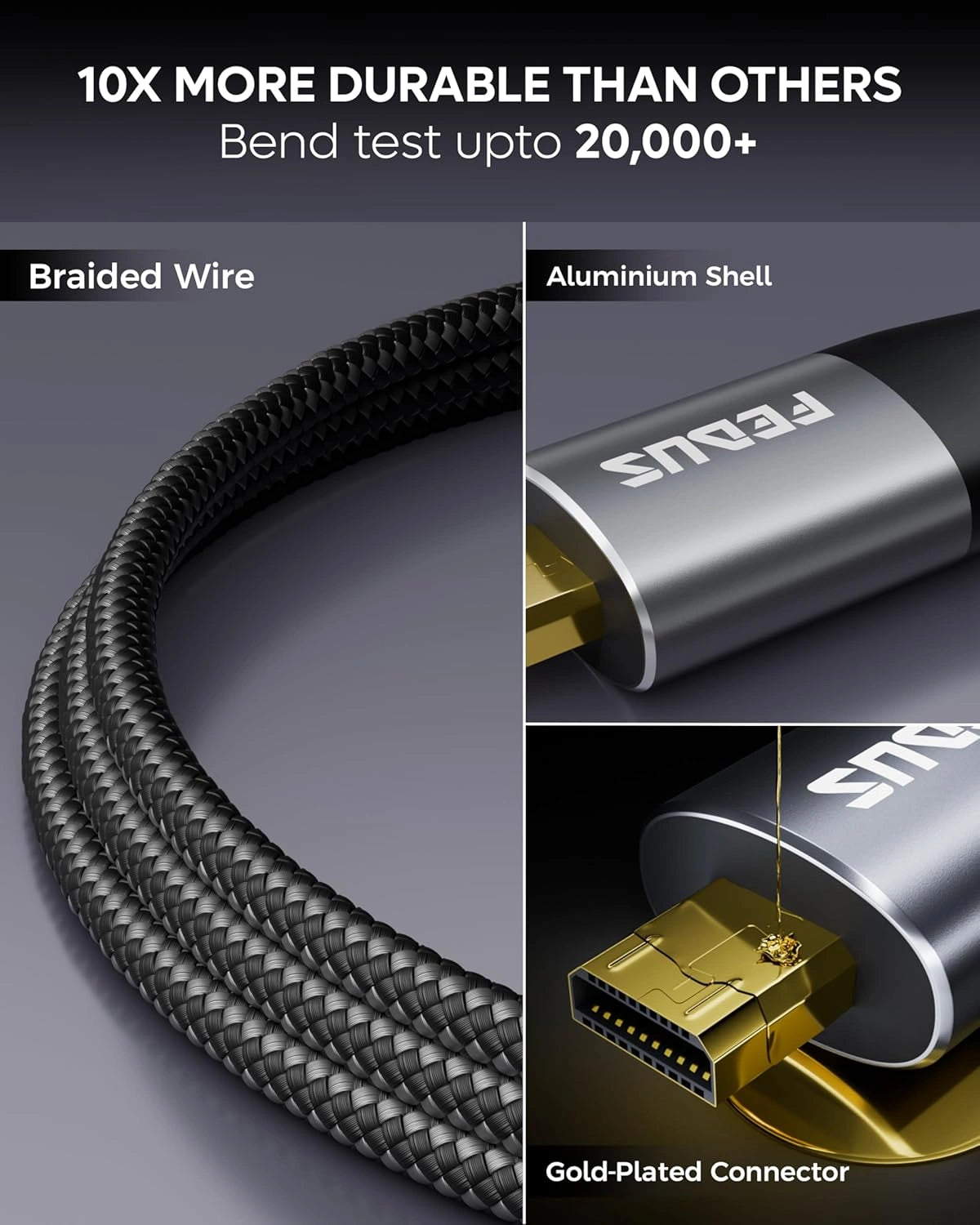 ▶EXCLUSIVE "X-BRAID" DURABILITY TECH – 20,000+ BENDS: Most cables fail at the neck. Our FEDUS exclusive triple-layered braiding technology makes this cable 10X more durable than standard PVC cables. Tested to survive over 20,000+ extreme 180-degree bends, the heavy-duty nylon outer jacket resists fraying and tangling. Whether you are a traveler packing your gear or a DIY enthusiast working in tight spaces behind a TV, our "Military-Grade" build ensures this is the last Micro HDMI cable you will ever buy.