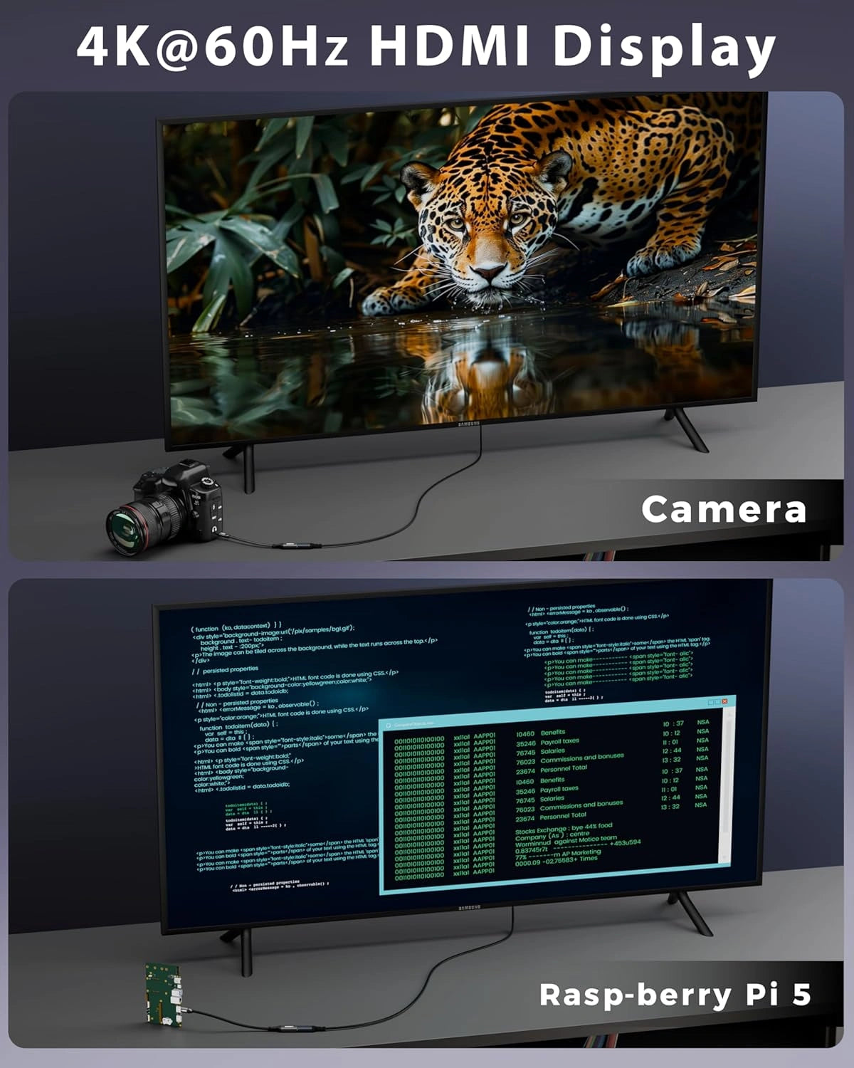 ▶OPTIMIZED FOR RASPBERRY PI 5 & CONTENT CREATORS: Specially tuned for the high power and data requirements of the Raspberry Pi 5 and 4. Content creators will love the seamless integration with GoPro Hero 11/10/9/8/7, Sony A6000/A6400, and Nikon DSLR cameras. Effortlessly stream your "Live Gameplay" or "Yoga Sessions" to a large screen without a millisecond of lag. It turns your high-end camera into a professional webcam, providing the "Large Screen" clarity your audience deserves.