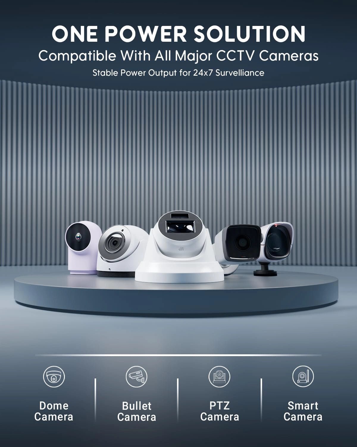 ▶ BUILT-IN VOLTAGE BOOSTER FOR LONG DISTANCE: Solve the problem of video signal loss! Our CCTV camera power supply includes an advanced voltage booster to ensure stable power delivery even for cameras installed at long distances. No more flickering or "No Signal" issues on your HD-TVI, CVI, or AHD cameras.