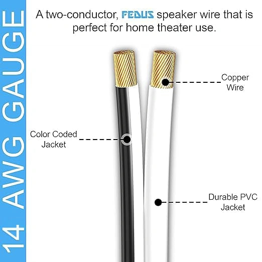 ▶OXYGEN FREE COPPER SPEAKER WIRE - The FEDUS Pro series speaker wires and cables use 14 Gauge AWG oxygen free copper conductors to build excellent signal transmission, FEDUS Pro Series OFC Speaker Wire Cable that’s build with high stranded conductors provides premium sound quality...