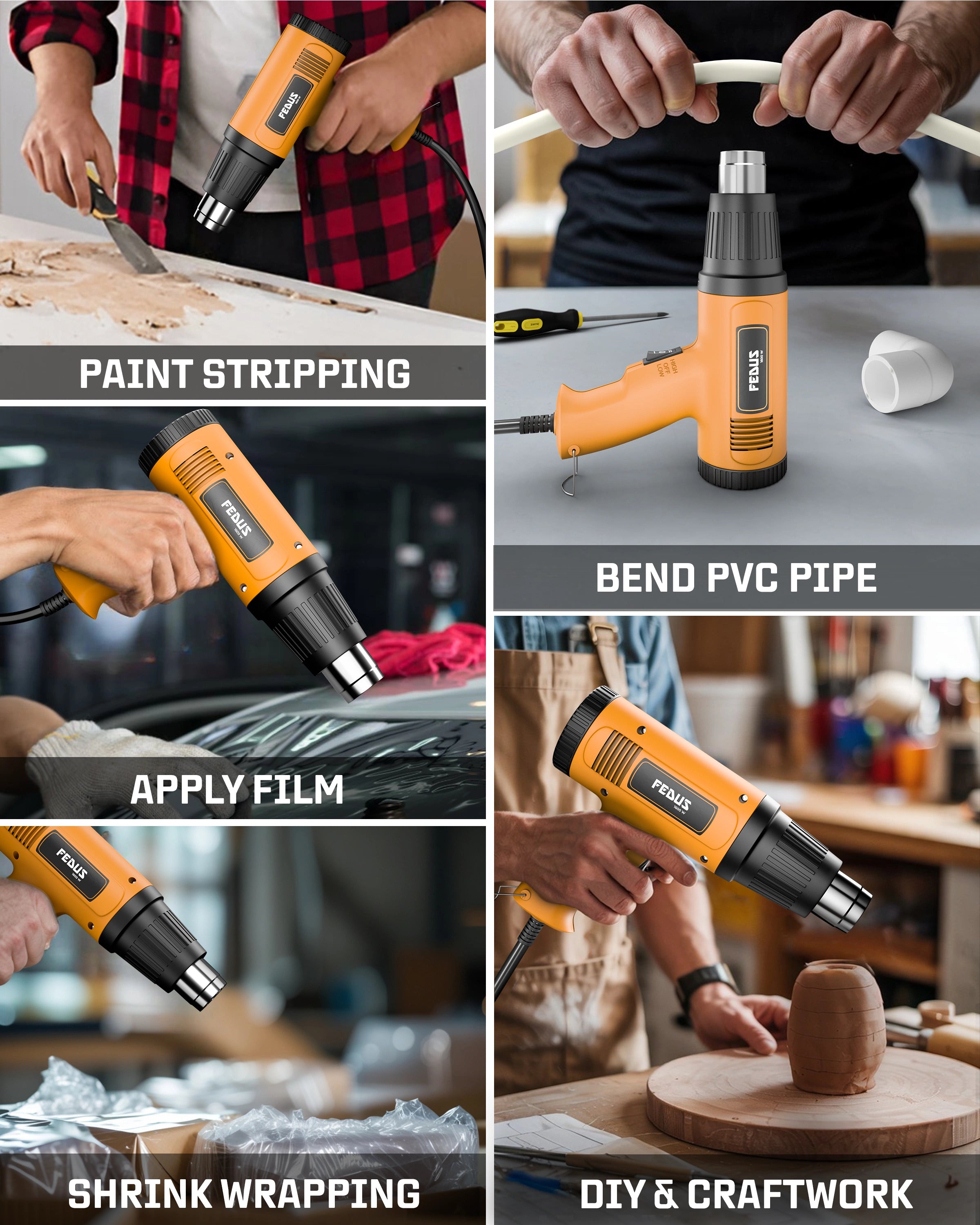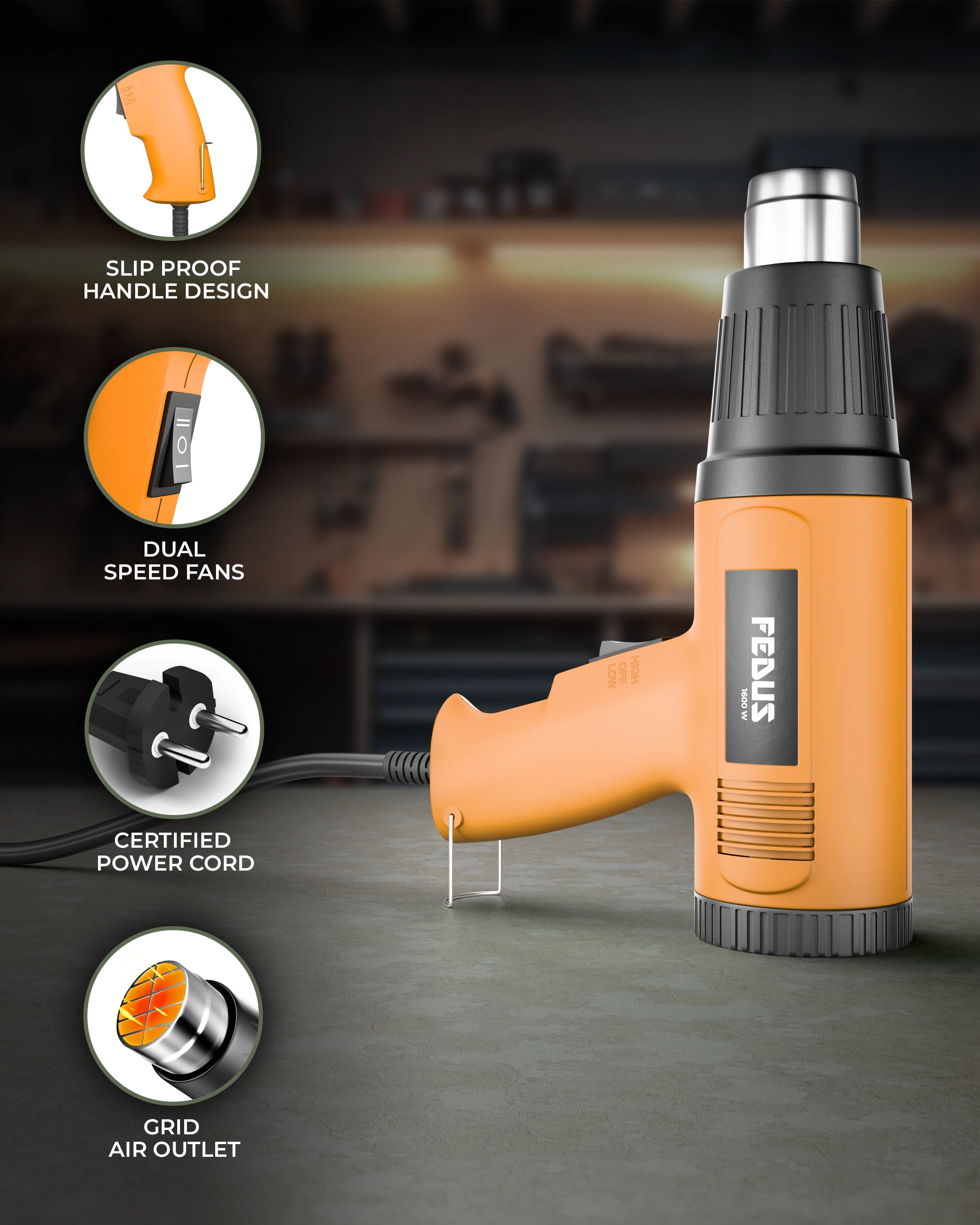 FEDUS Heat Gun Hot Air Gun Temperature Machine 1600W, 2 Temp Settings Great for industrial use & Crafts, Removing & Drying Paint, Shrink Tubing/Wrapping Packing, Bend Plastic Pipes, Epoxy Resin, Yellow