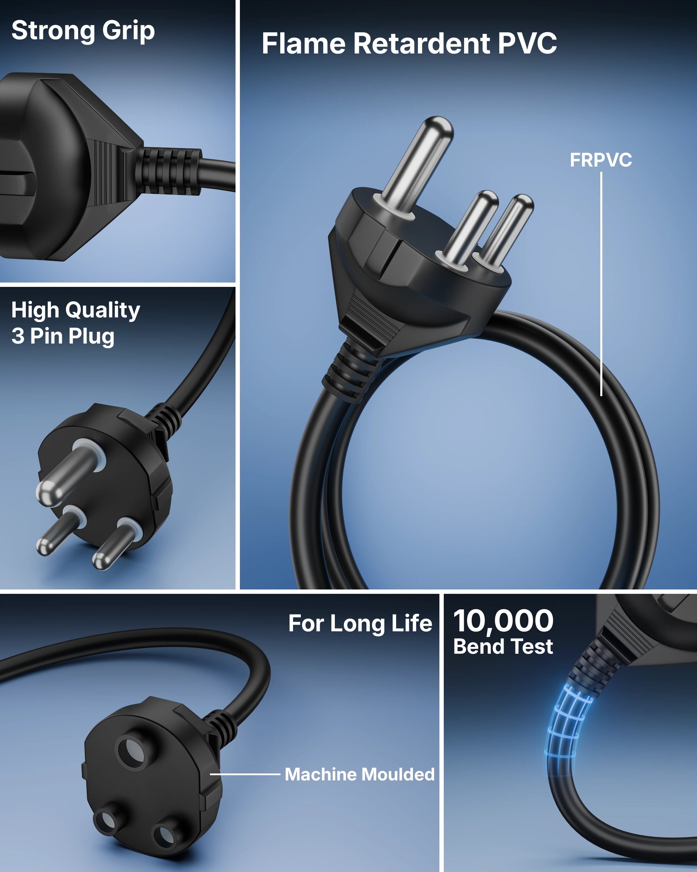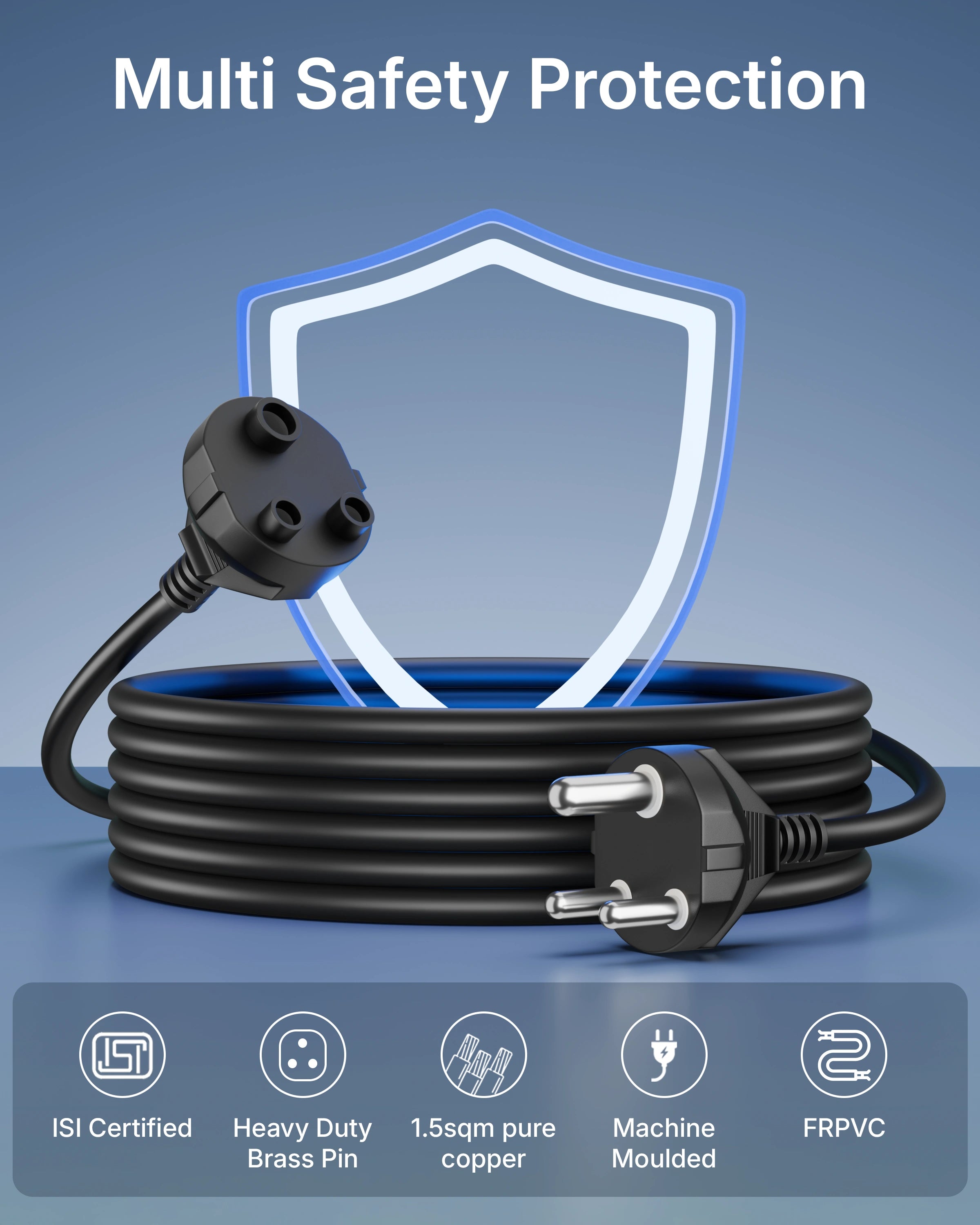 ▶UNMATCHED 16A HEAVY DUTY PERFORMANCE: Specifically engineered for high-power appliances! This 16 Amp cable is built to safely and reliably power your AC units, Induction Cooktops, Geysers, Microwave Ovens, Refrigerators, iron, ev scooter/Bike, and other heavy-load devices. Say goodbye to the worry of thin cables melting or overheating, ensuring maximum protection for your expensive electronics.