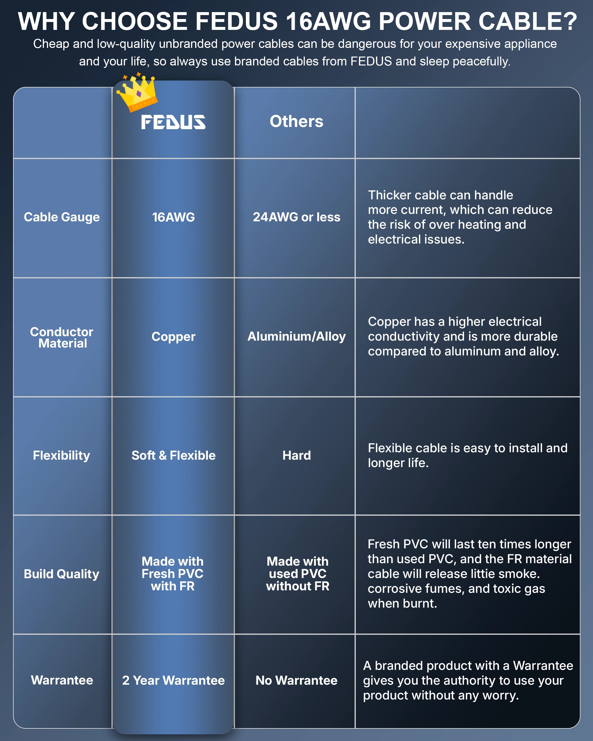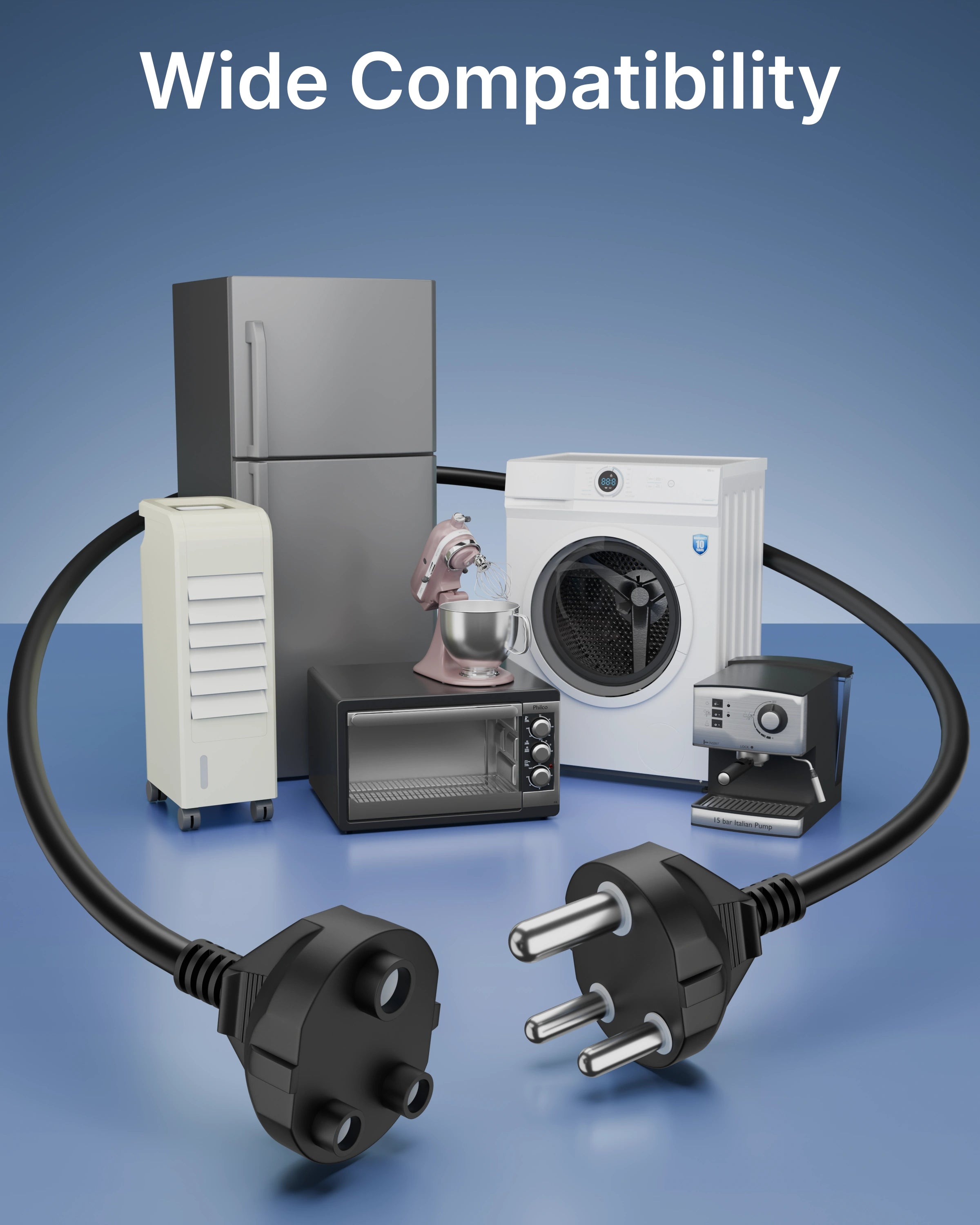 ▶SUPERIOR 1.5 SQ MM (16 AWG) PURE COPPER CONDUCTOR: Engineered with a 1.5 mm² (16 AWG) thickness, this 3-Core cable is rated to safely handle a continuous 16 Amp load, aligning with international safety standards. The thicker wire gauge minimizes voltage drop and heat generation, guaranteeing efficient and reliable power delivery to your heavy-duty appliances.