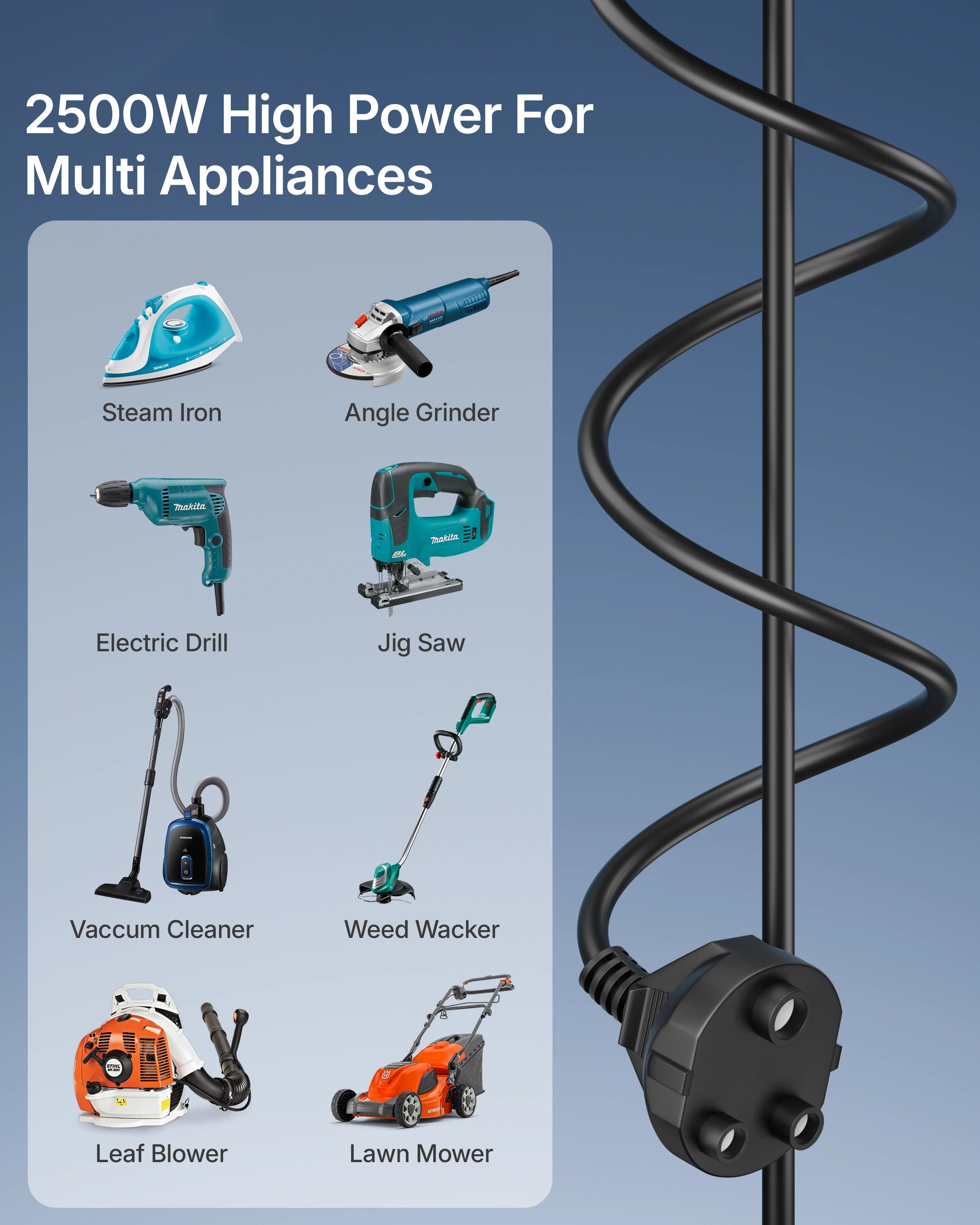 ▶PERFECT FOR LOW & HIGH-WATTAGE APPLIANCES: Compatible with a wide variety of home, office, and kitchen appliances. Whether you're using toasters, coffee makers, blenders, or kettles, or powering high-demand appliances like washing machines, refrigerators, air conditioners, microwaves, and even electric vehicles (EV chargers), it also supports commercial applications, Power everything from vacuum cleaners to treadmills, dishwashers, grills, water purifiers, and more with ease.