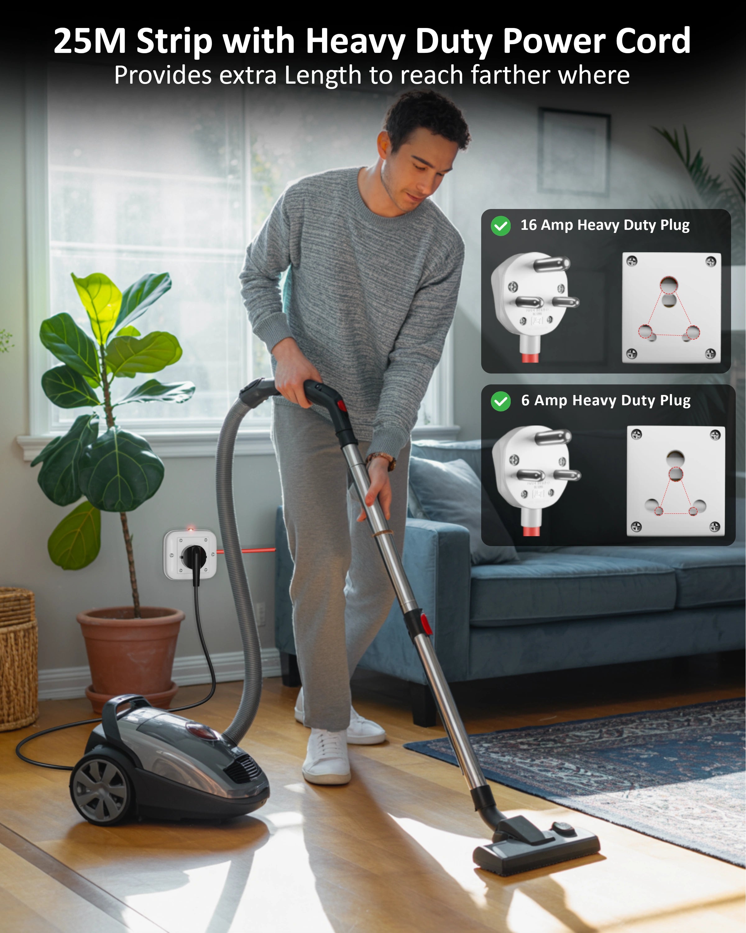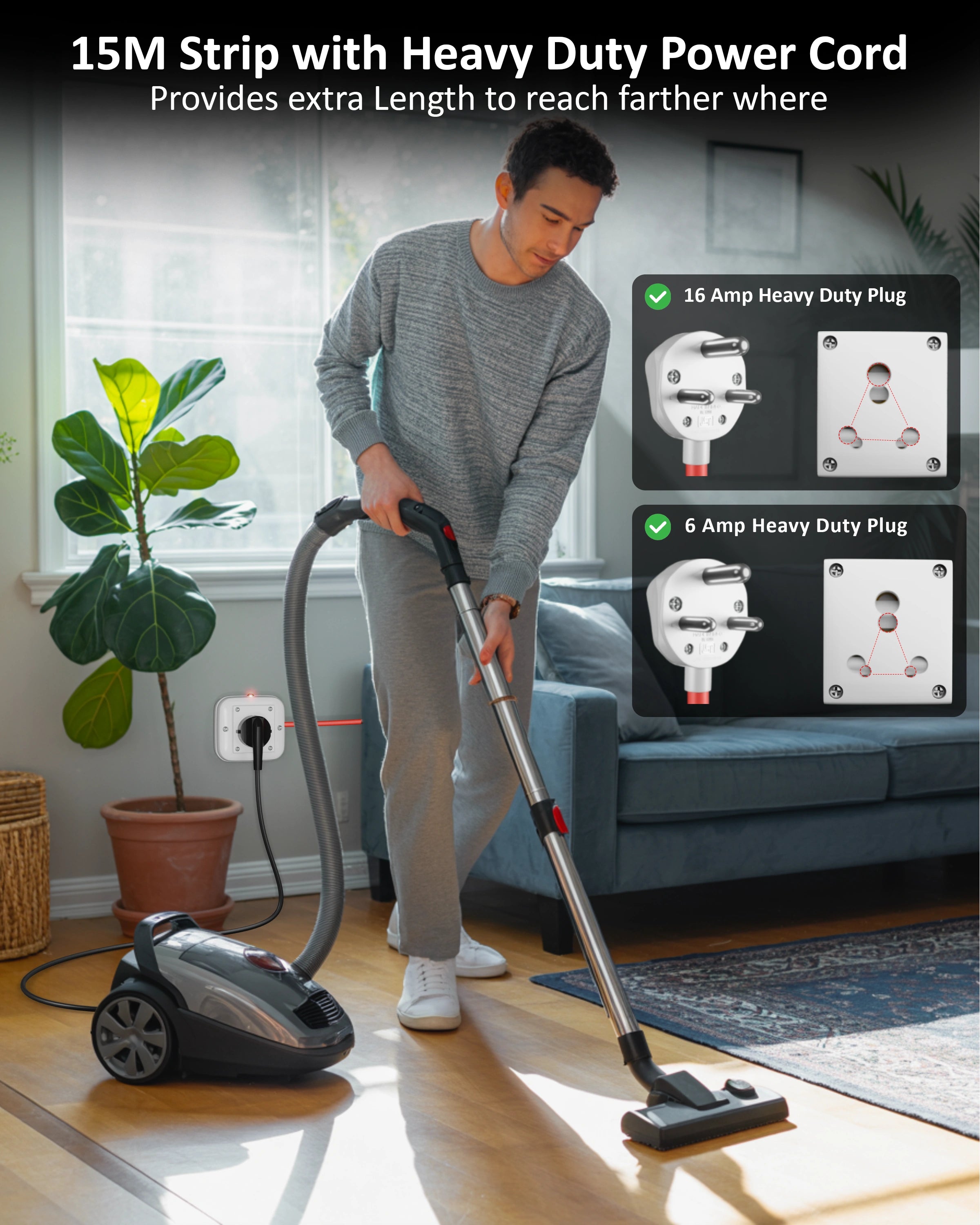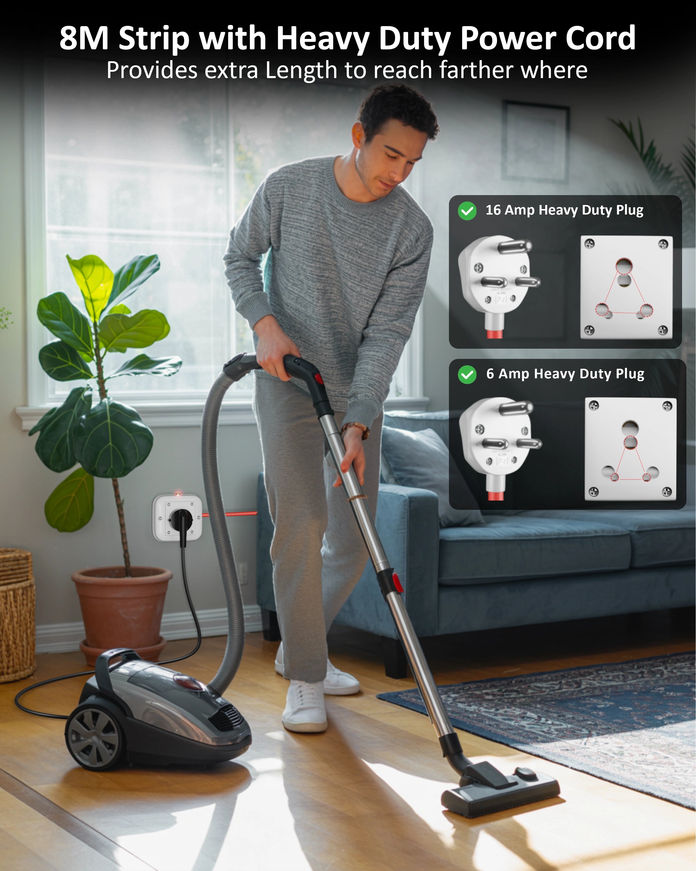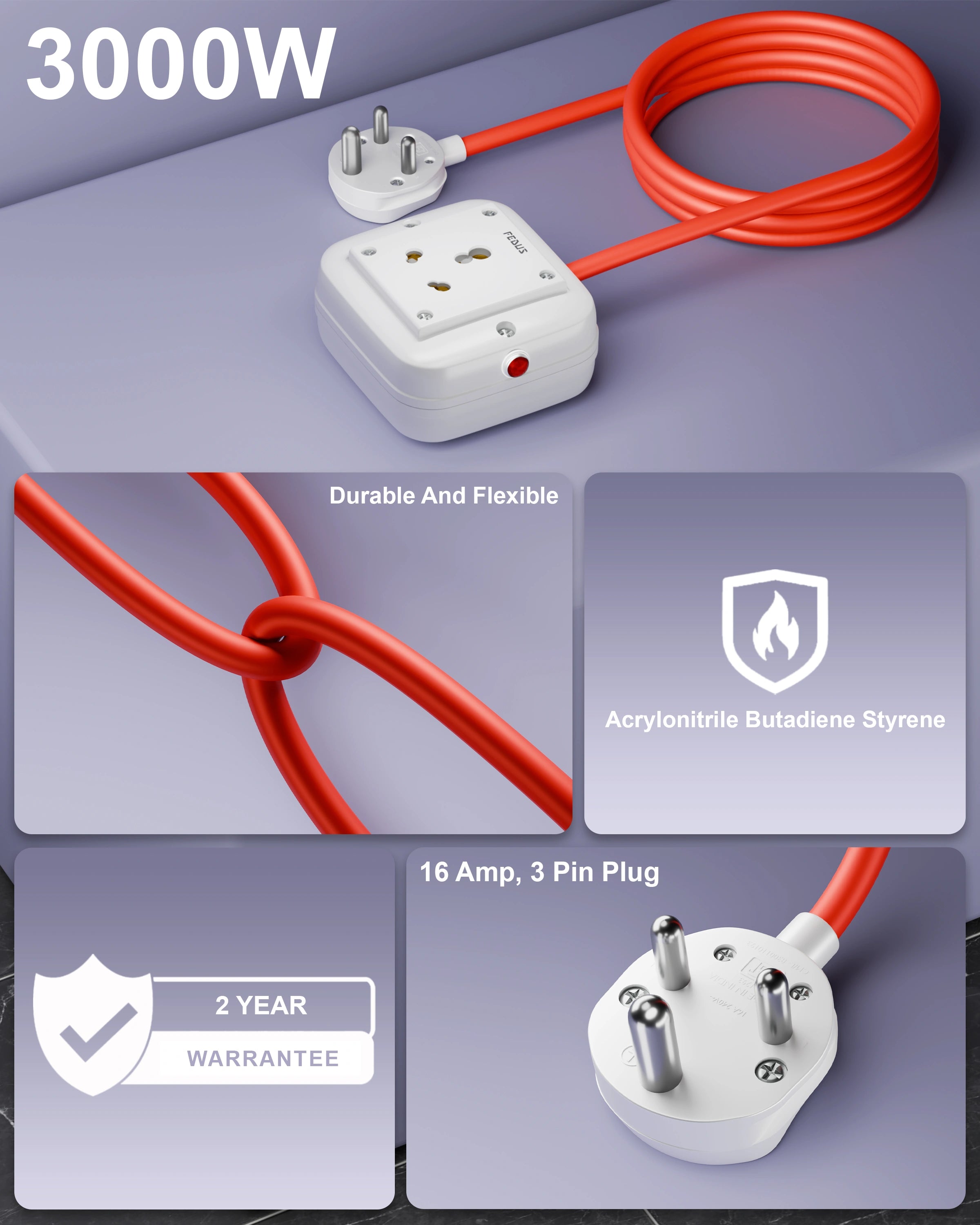 I purchased the Fedus heavy duty extension board 16amp 3000w with a 2m, and the quality is excellent. It handles heavy load appliances like microwave oven, induction stove, iron press, ac, and ev charger without any heating or power issue.