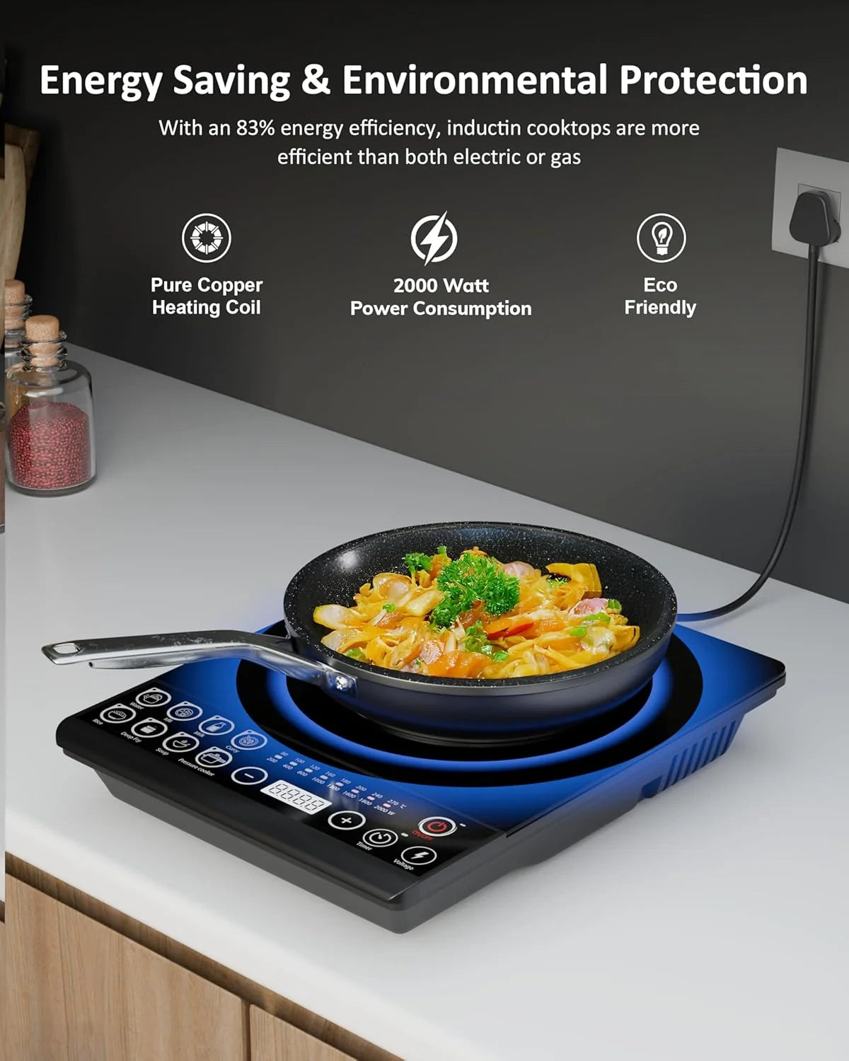 • ▶HEATS 40% FASTER: The Slim design and its patented insulation technology brings the induction heating coils closer to your cookware than the competition for faster & even heating, ensuring no hot or cold spots found. Unlike the competition, our induction utilizes PURE COPPER coils, greatly enhancing its efficiency and converts 90% of electromagnetic energy into heat! Other brand stoves typically only transfer about 30% of heat for cooking. means faster cooking and less energy and money wasted.