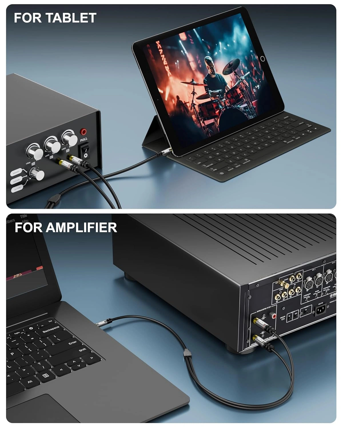 • ►EXCELLENT SOUND QUALITY: Built with dual-shielding, a 24K gold plated connector, and an oxygen-free pure copper core, it creates reliable performance and reduces signal loss. No longer suffer from radio frequency interference (RFI) and electromagnetic interference (EMI), seamlessly transmit clear and high-quality stereo sound with minimal signal loss. Seamlessly transmits stereo audio for high-quality sound, making you enjoy your music anywhere and anytime.
