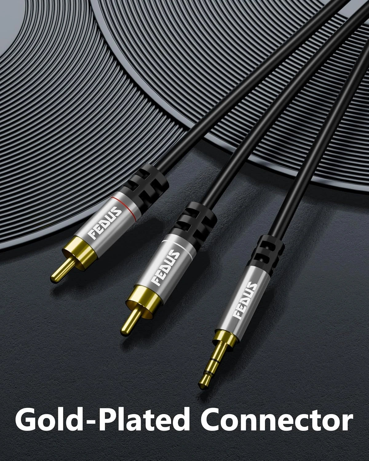 • ►USER-FRIENDLY DESIGN: FEDUS 3.5mm to 2RCA Audio Y Cord Designed with an ultra-thin connector, it can be connected tightly and securely without taking off the protective cover from the smartphone or tablet. RCA connectors have easy grips for plugging and unplugging while ensuring reliability.