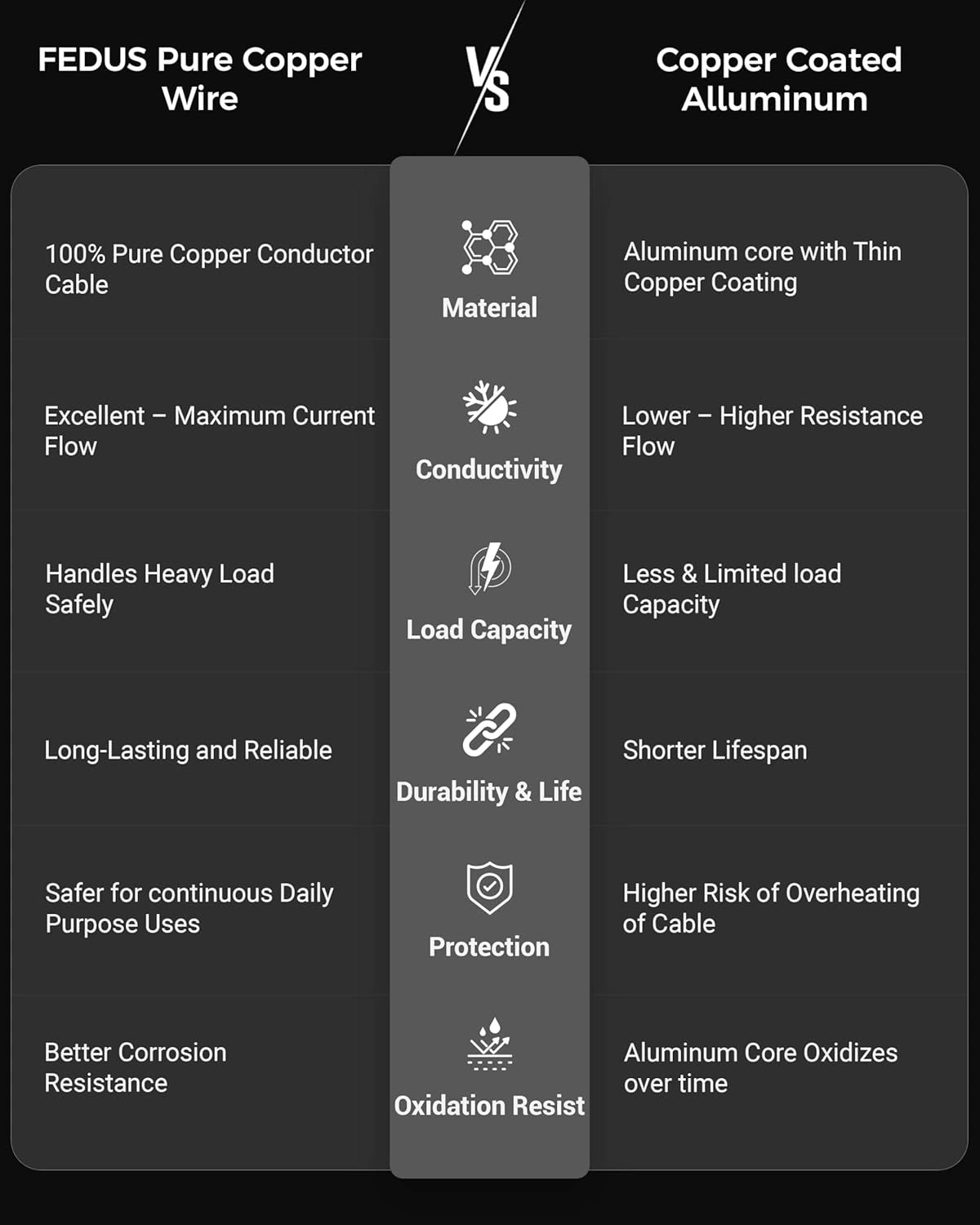►99.99% PURE OXYGEN-FREE COPPER FOR MAXIMUM SAFETY: Stop worrying about "Copper Coated Aluminum (CCA)" fakes that overheat and cause short circuits. Our FEDUS 3-core power cable is engineered with 99.99% Pure Electrolytic Grade Oxygen-Free Copper, ensuring 100% conductivity and minimal resistance. Unlike cheap competitors with only 15% copper content, our wire handles maximum current flow without getting hot, protecting your expensive appliances and home from electrical fire hazards.