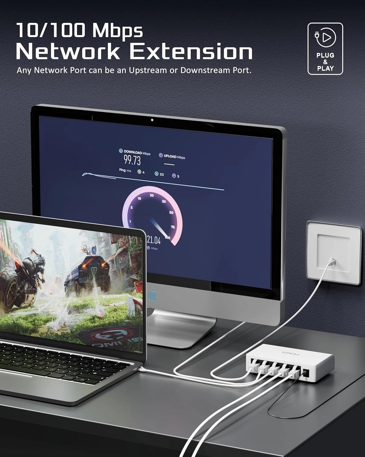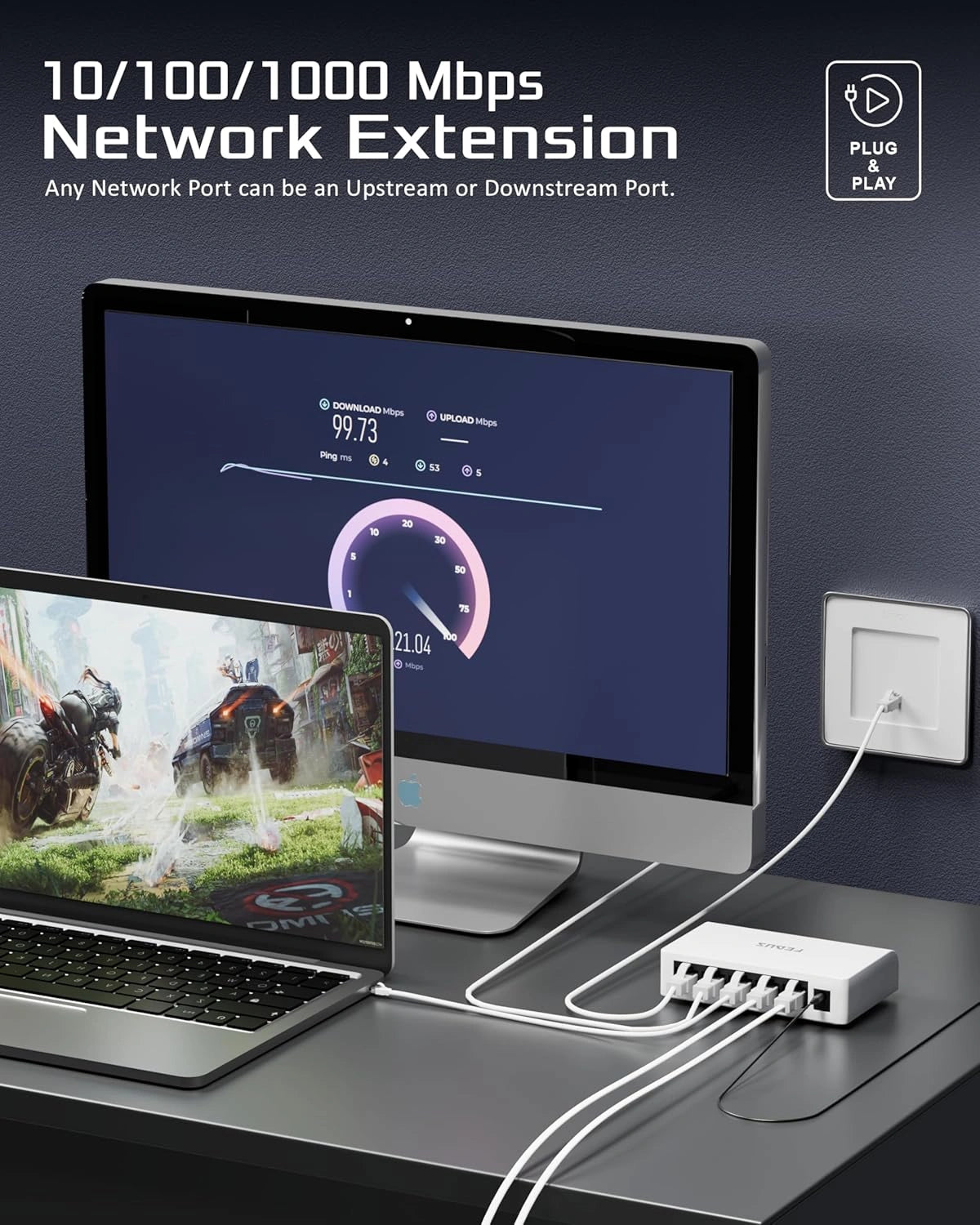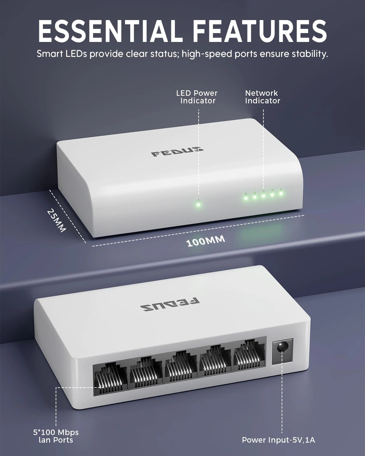 The compact design, led indicators, and fanless quiet operation make it ideal for home and office use. I connected laptop, router, and NAS easily, and performance is smooth. Overall, Fedus ethernet switch has good build quality, reliable speed, and is worth buying.