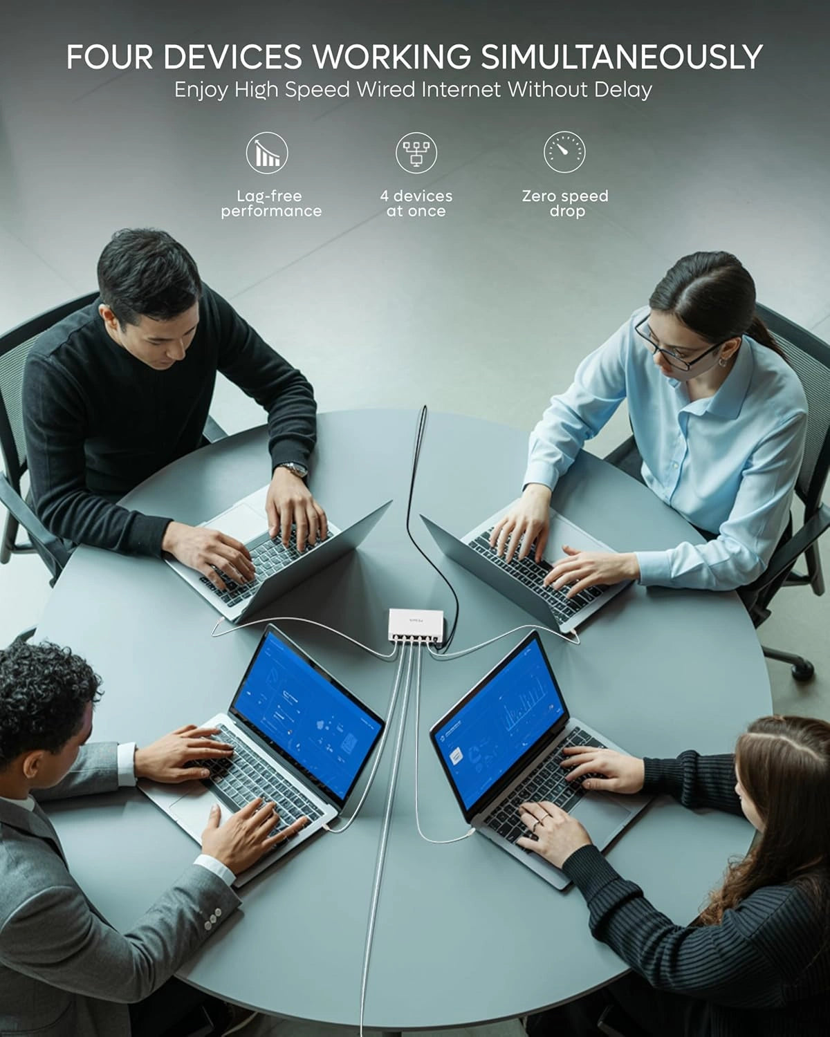 I purchased the Fedus 5 port ethernet switch / ethernet splitter for 100 Mbps internet connection, and it works perfectly. The setup is truly plug & play, no configuration required. All ports give stable speed without any drop.