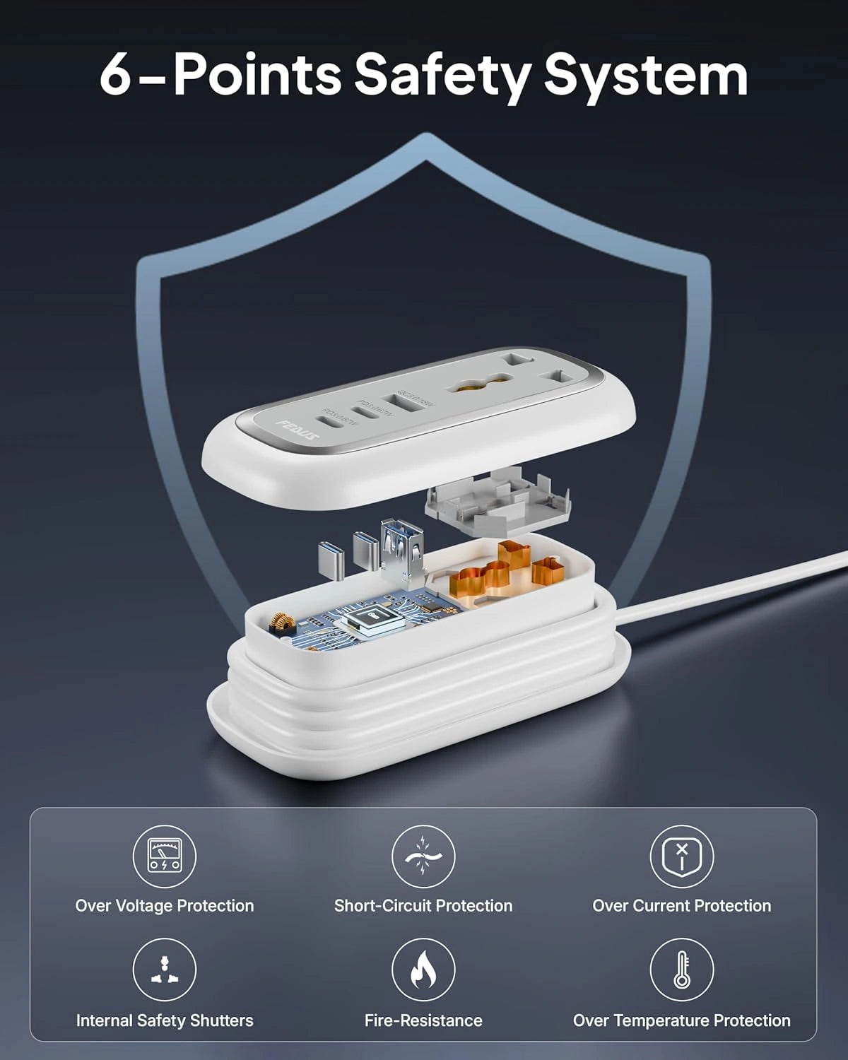 This 67w gan travel power strip is super handy-compact design, retractable cable, and fast charging on both Type-C ports. The international sockets are perfect for my laptop and appliances. Great for travel and desk use.