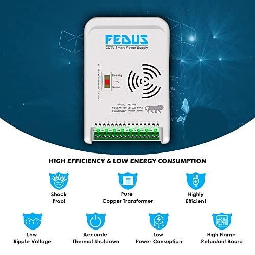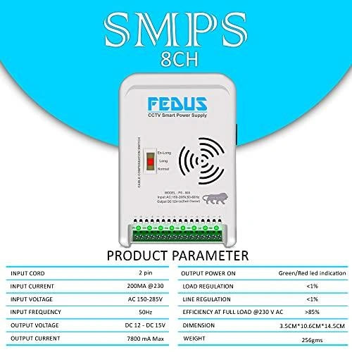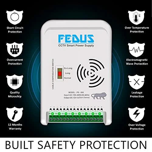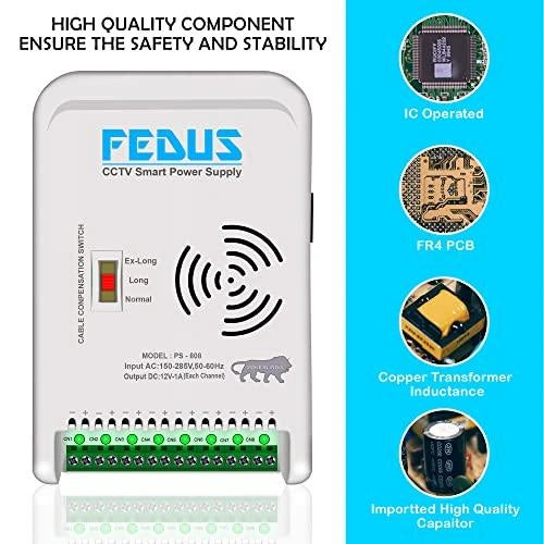 FEDUS 8 Channel SMPS for CCTV, Power Supply Adapter for up to 8 CCTV Security Cameras, CCTV Power Supply SMPS, Power Supply Adapter for Video Surveillance Camera System, CCTV, Dome, Bullet Cameras