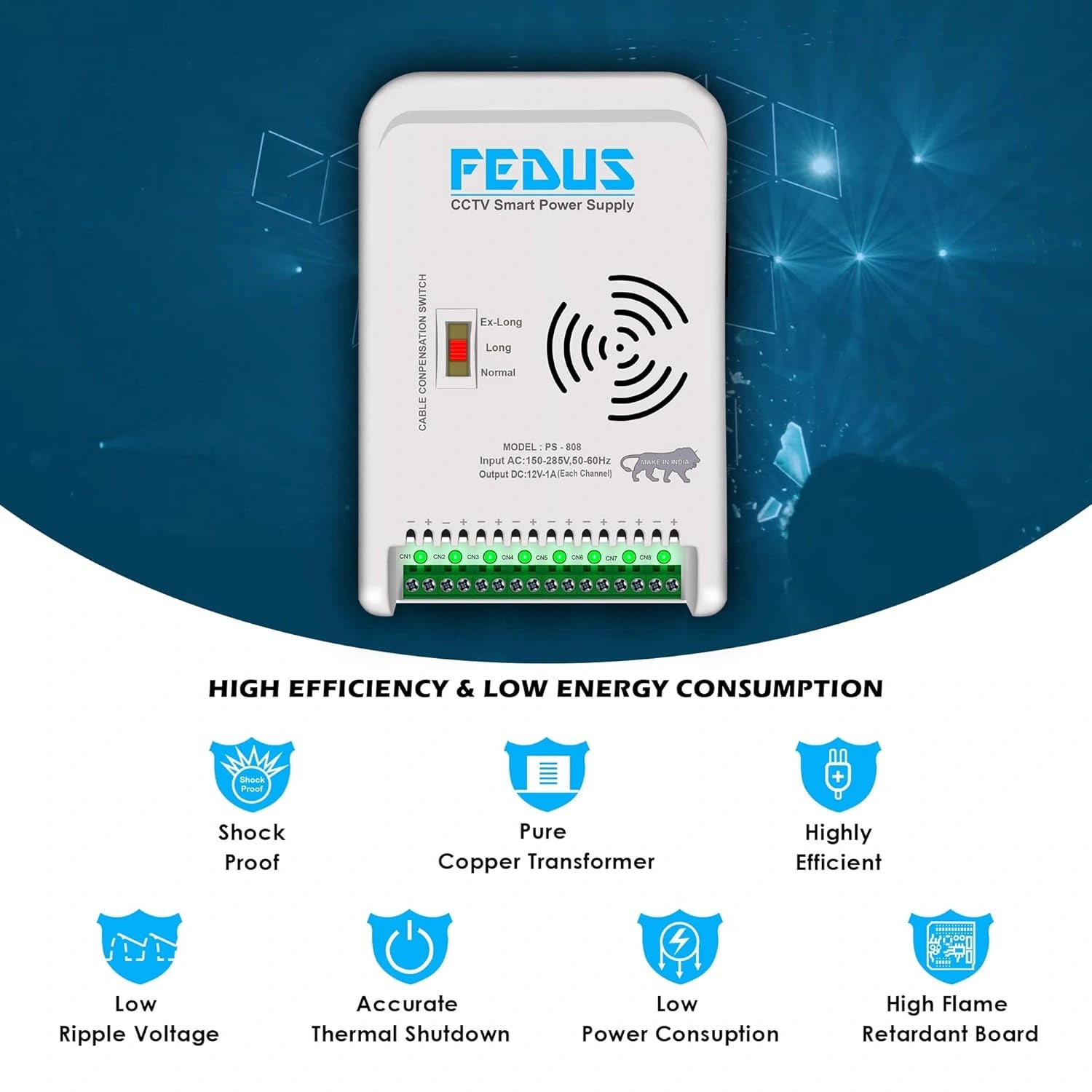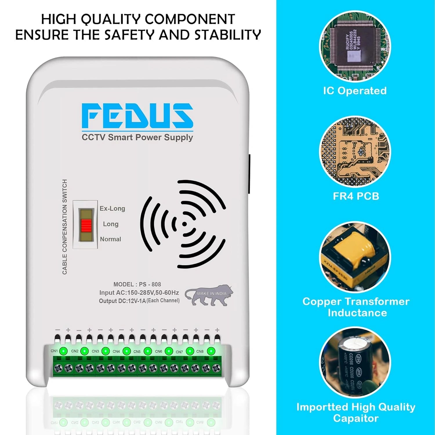I bought the Fedus 8 channel smps for my cctv security camera system. It delivers dependable power to all cameras, has a solid build, and keeps the system running smoothly without any issues.