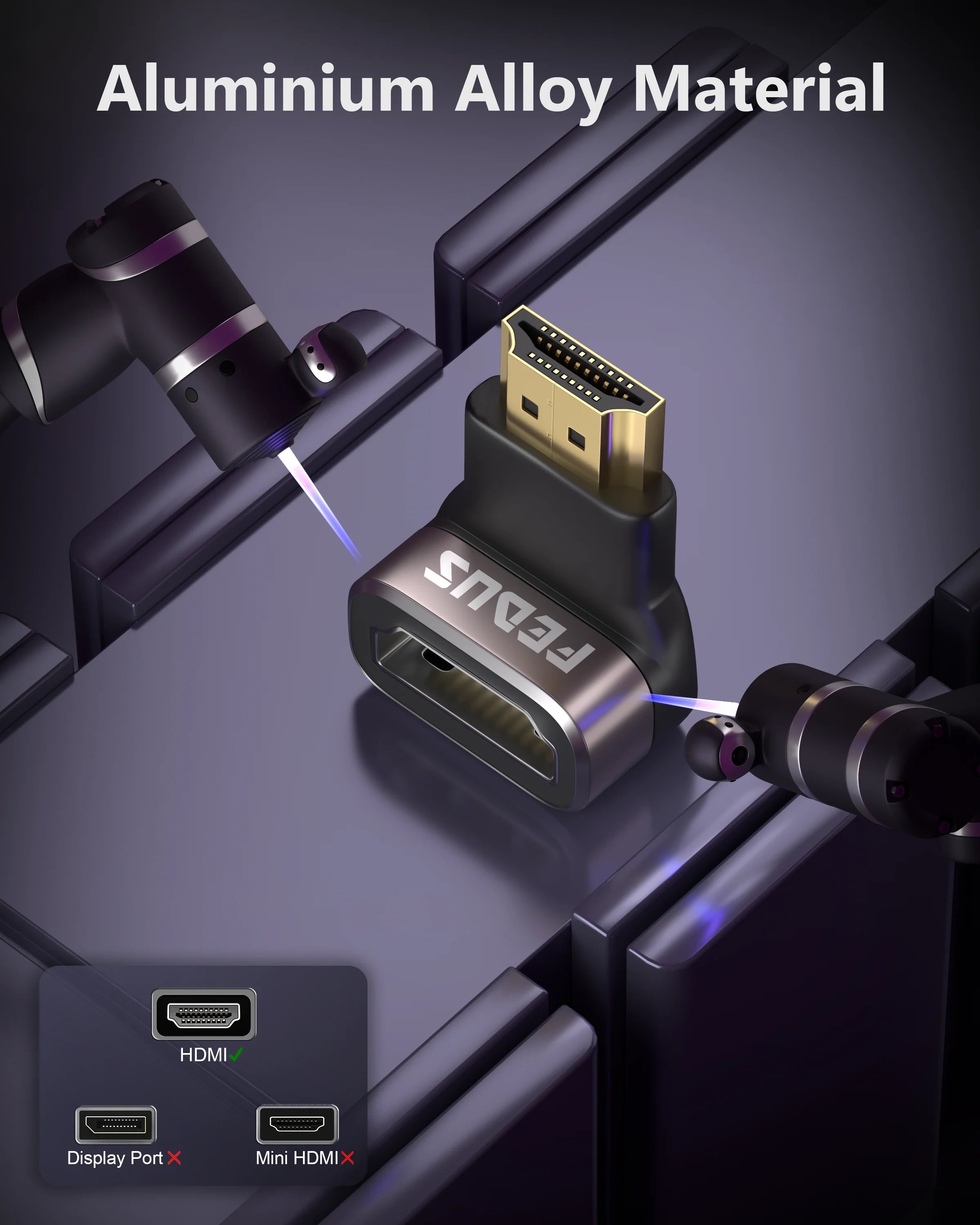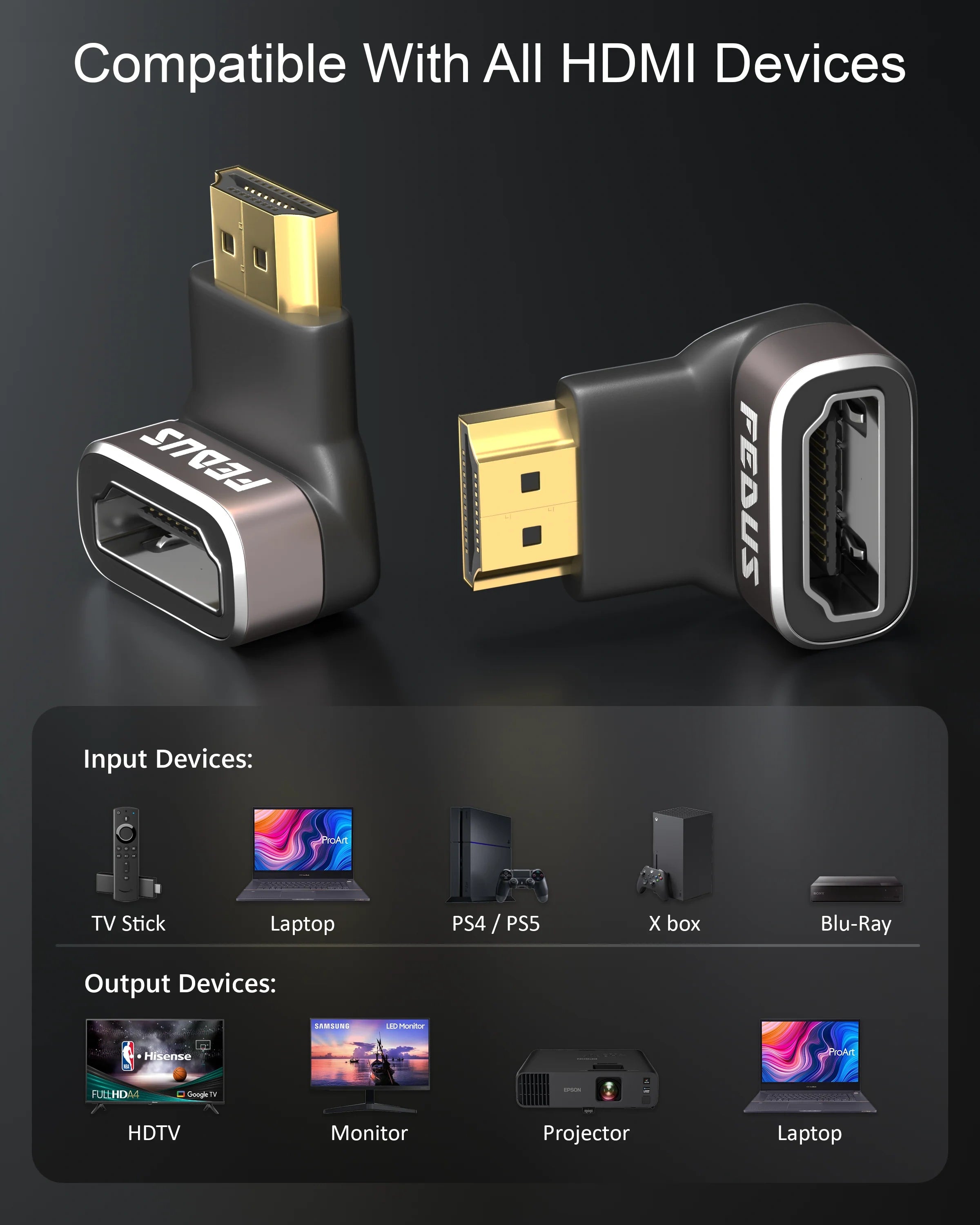 FEDUS 8K Ultra HD HDMI Connector 90 Degree L Shape HDMI Male to Female Converter Right Angle HDMI Adapter Extender for TV Led LCD TV Stick, Xbox, PS3 PS4 PS5, Supports 3D HDR, eARC, 8K@60Hz 4K@144Hz
