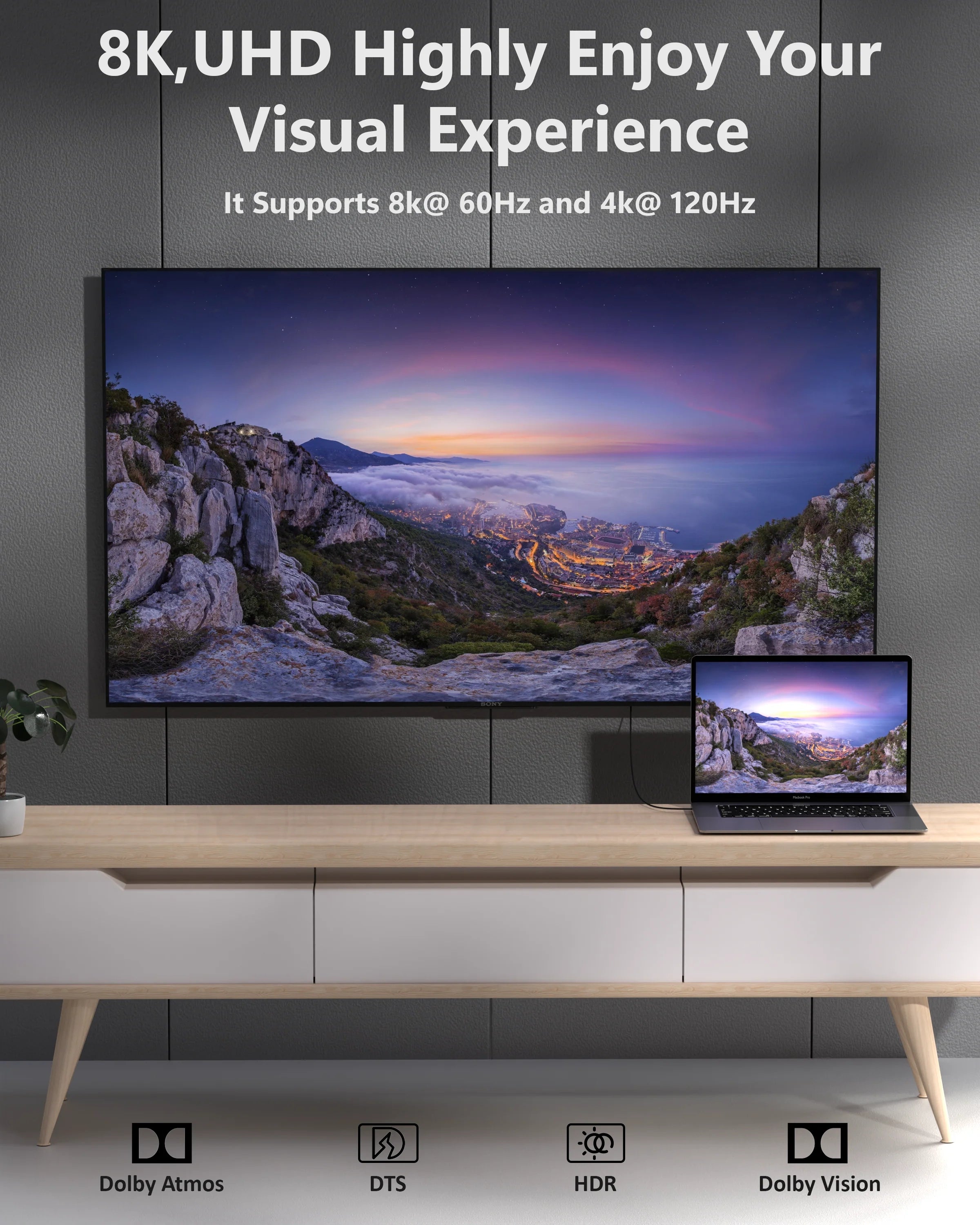 • ▶8K HDMI ADAPTER WITHINNOVATIVE HDMI 2.1 FEATURES: FEDUS HDMI male-to-female adapter to connect devices at a resolution of up to 8K@ 60Hz and 4K@ 120Hz, with a backward compatible 2K and 1080P resolution. Our HDMI coupler supports ALLM(Auto Low Latency Mode) and VRR (Variable Refresh Rate), HDR, eARC, HDCP 2.3, Dynamic HDR, Dolby Vision, HD Dolby 7.1, Dolby Atmos and 3D video, bringing you a cinematic immersive visual experience and enhances every moment values for depth, detail, brightness.