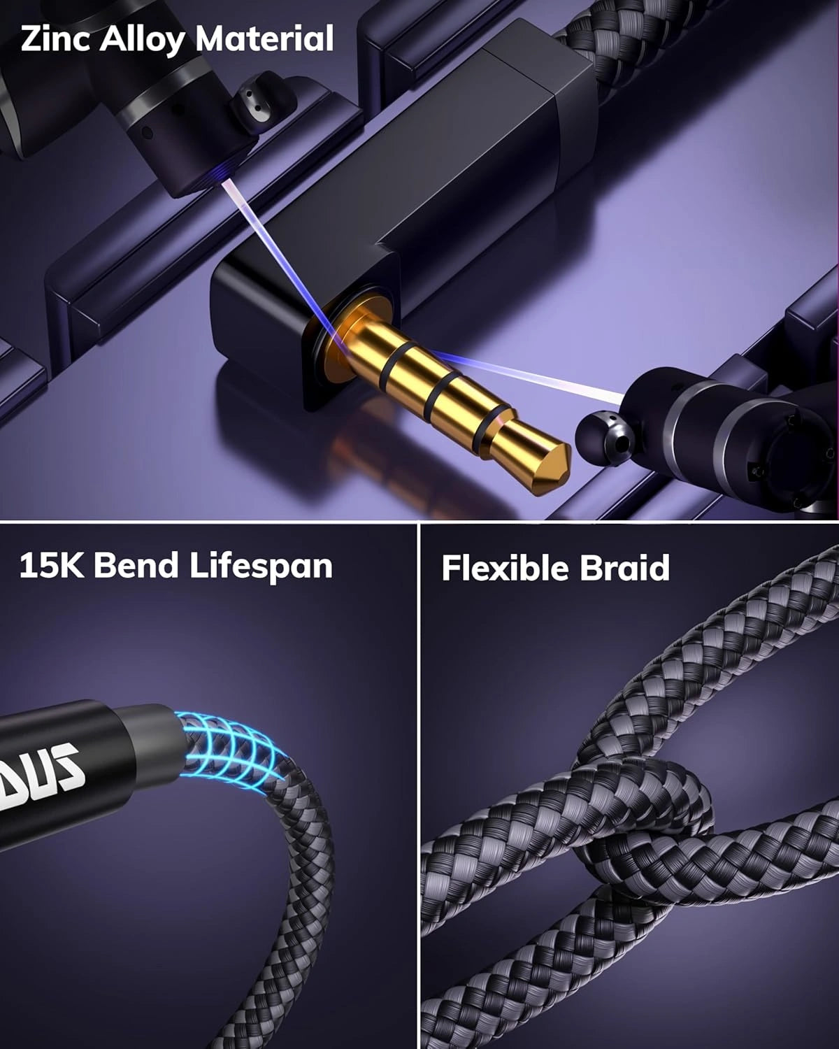 • ▶UNPARALLELED SOUND QUALITY: 24k gold plated connectors with firm metal housing resist corrosion and reduce tarnish, also to avoid any signal loss, which presents clear, natural, and excellent sound performance., allowing you to immerse in high-quality music without disruption. And offering more precise sound. It is Great for voice chat in a game, video chat, live broadcast, listening to music, and singing, realistically restoring the original sound