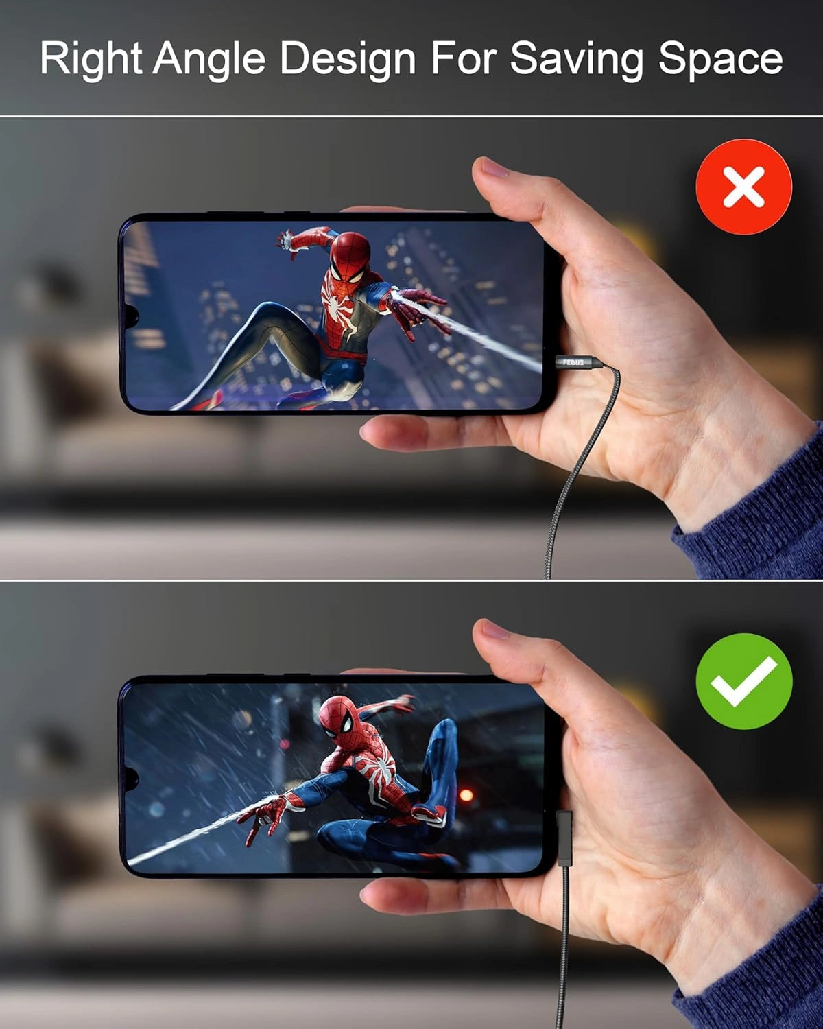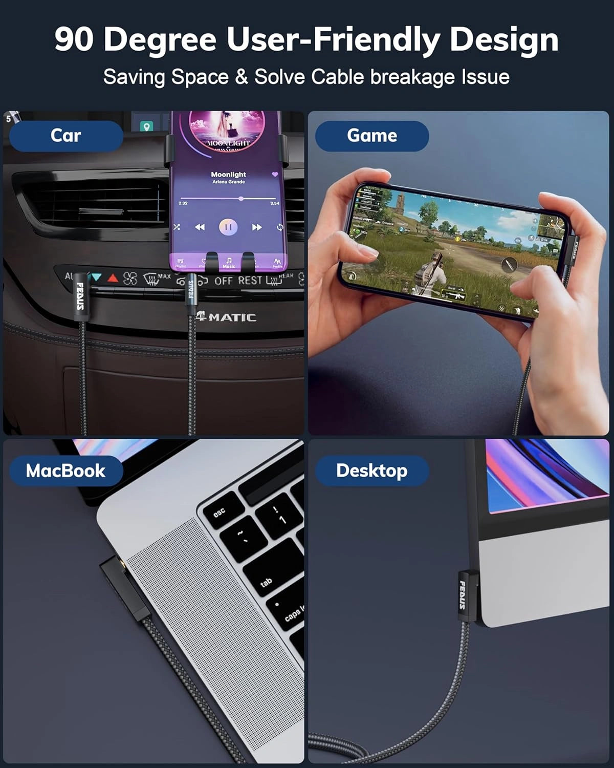 ▶RIGHT ANGLE DESIGN FOR SAVING SPACE: Comparing with straight joint cable, 90 Degree angle helps release strain,...