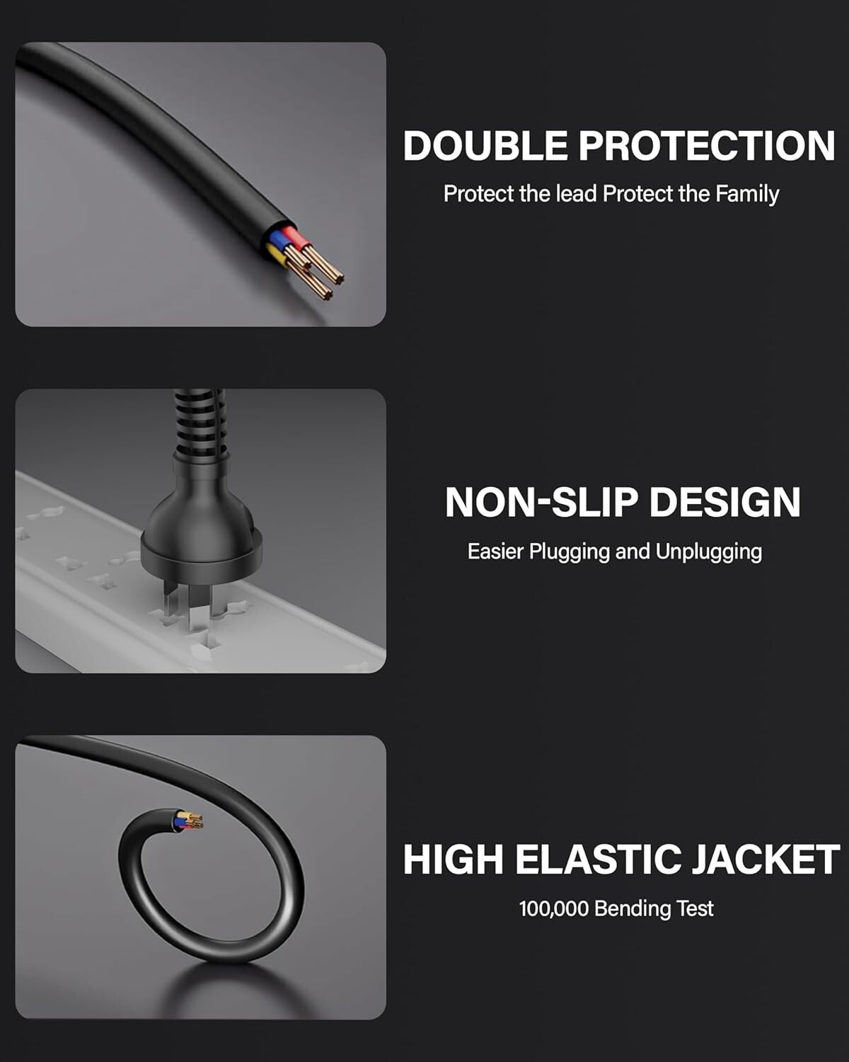 • ▶LIFE CAN BE AS LONG AS 80,000 HOURS: The high-standard wire core transmits current safely, there will be no crashes, no jams, insufficient power supply or even burning of equipment. The wire body is soft and resistant to bending, tensile resistance, abrasion resistance, strong electrical conductivity, long-lasting and stable three-core copper core wire, the wire is soft and foldable.