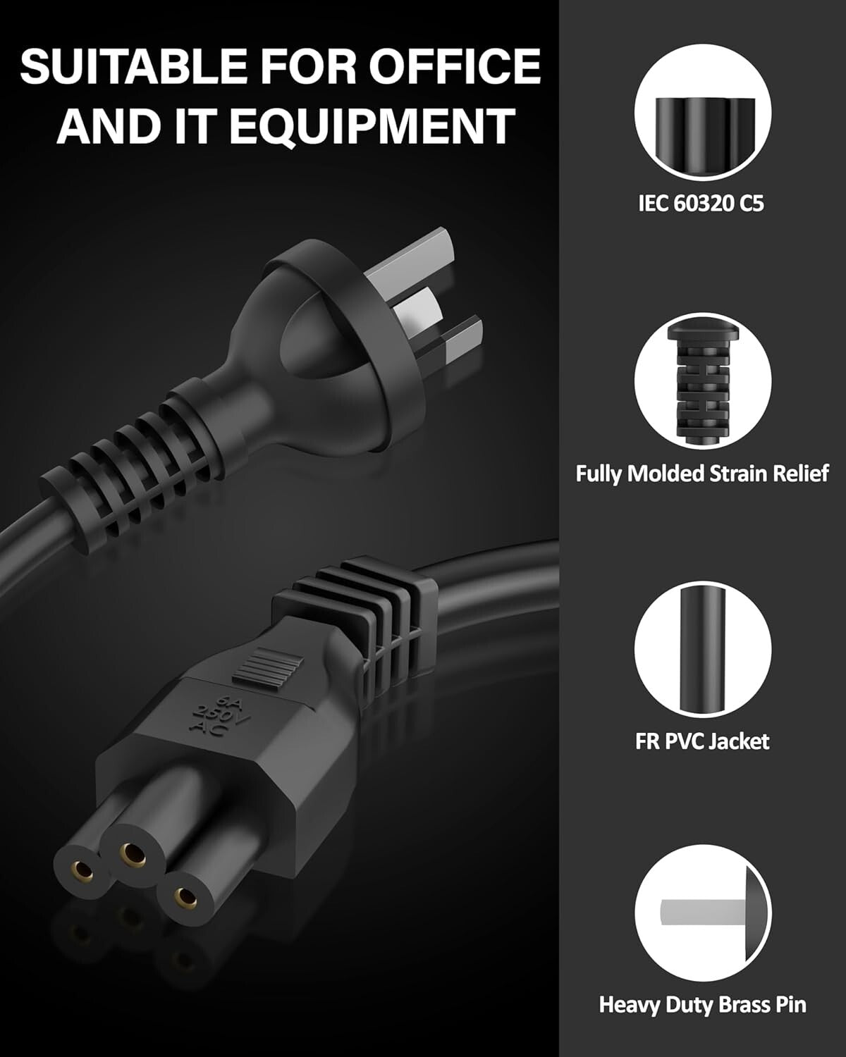 • ▶COMPATIBILITY: Replacement IEC C5 power cable is one of the most widely used electrical power leads. Suitable for Laptop power adaptor, monitors, computers, televisions, printers, scanners, printers and projectors, machine code, kettle, rice cooker.