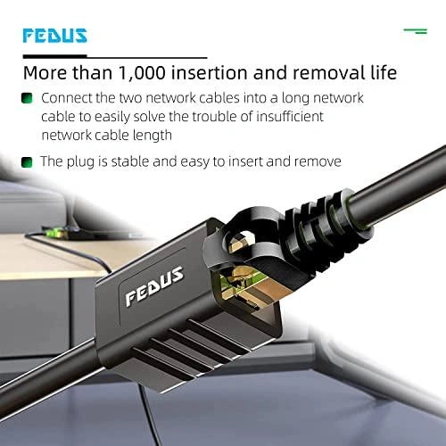 ►EASY CONNECTION - FEDUS CAT8 Ethernet extender cable helps you to extend your original ethernet connection to a router or modem, instead of purchasing another longer cable. Being male to female ethernet cable, Protect computers, laptop, TV network ports from constant plug and unplug, extension is easy to use when extending wired connection in small space and short distance also Provides a spare network patch cable for testing or temporary connections in a conference room or classroom