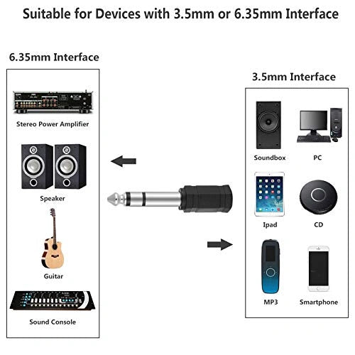 FEDUS Pack 5, 6.35mm Stereo Male to 3.5mm Female Stereo Jack Headphone Adapter Converter