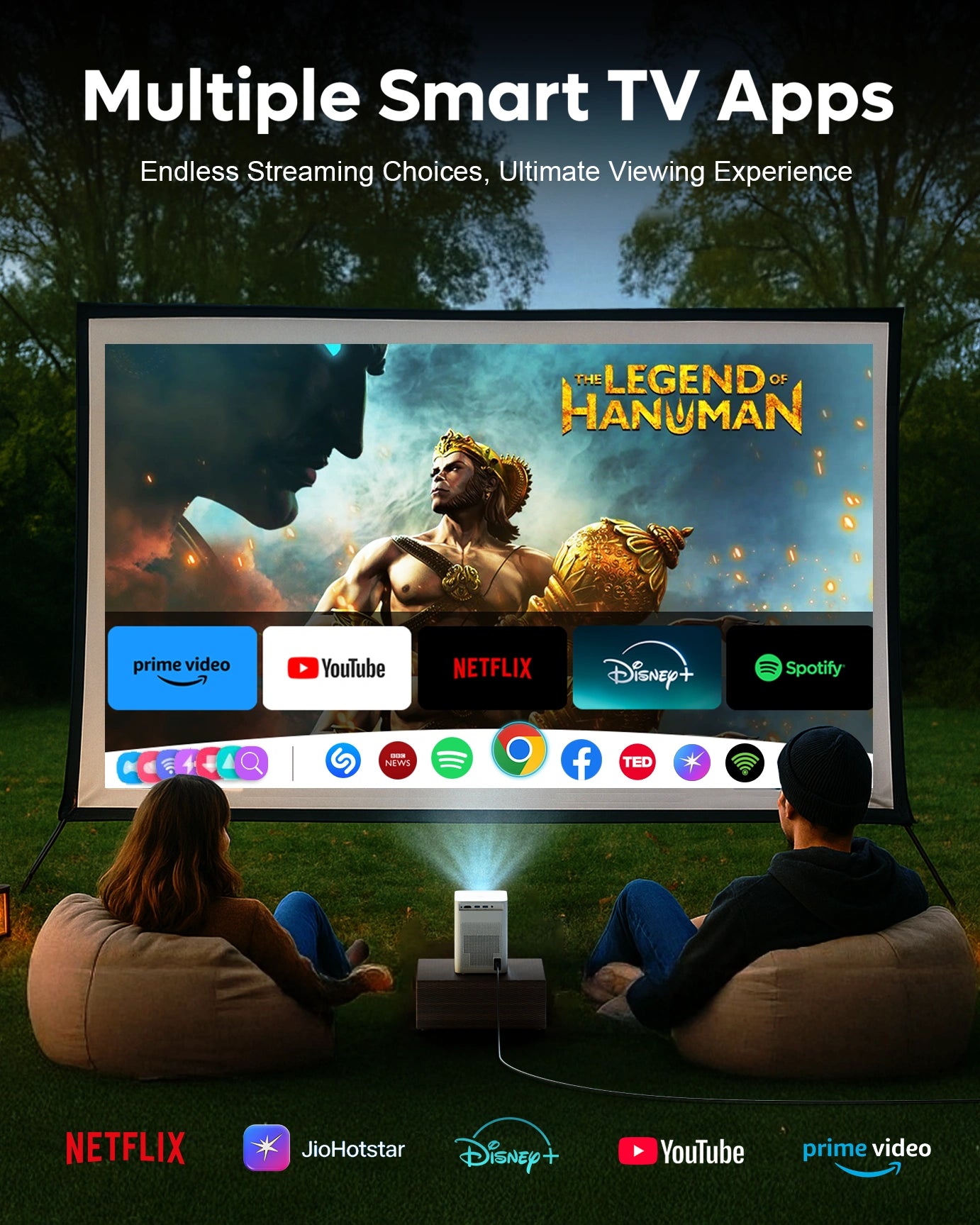 ▶ SMART CONNECTIVITY: Equipped with Dual-Band WiFi (2.4G & 5G) and Two-Way Bluetooth, it connects seamlessly to smartphones, laptops, Fire Stick, PlayStation, and TV boxes. HDMI & USB ports make it versatile for all devices. Wireless screen mirroring ensures a truly smart projector experience.
