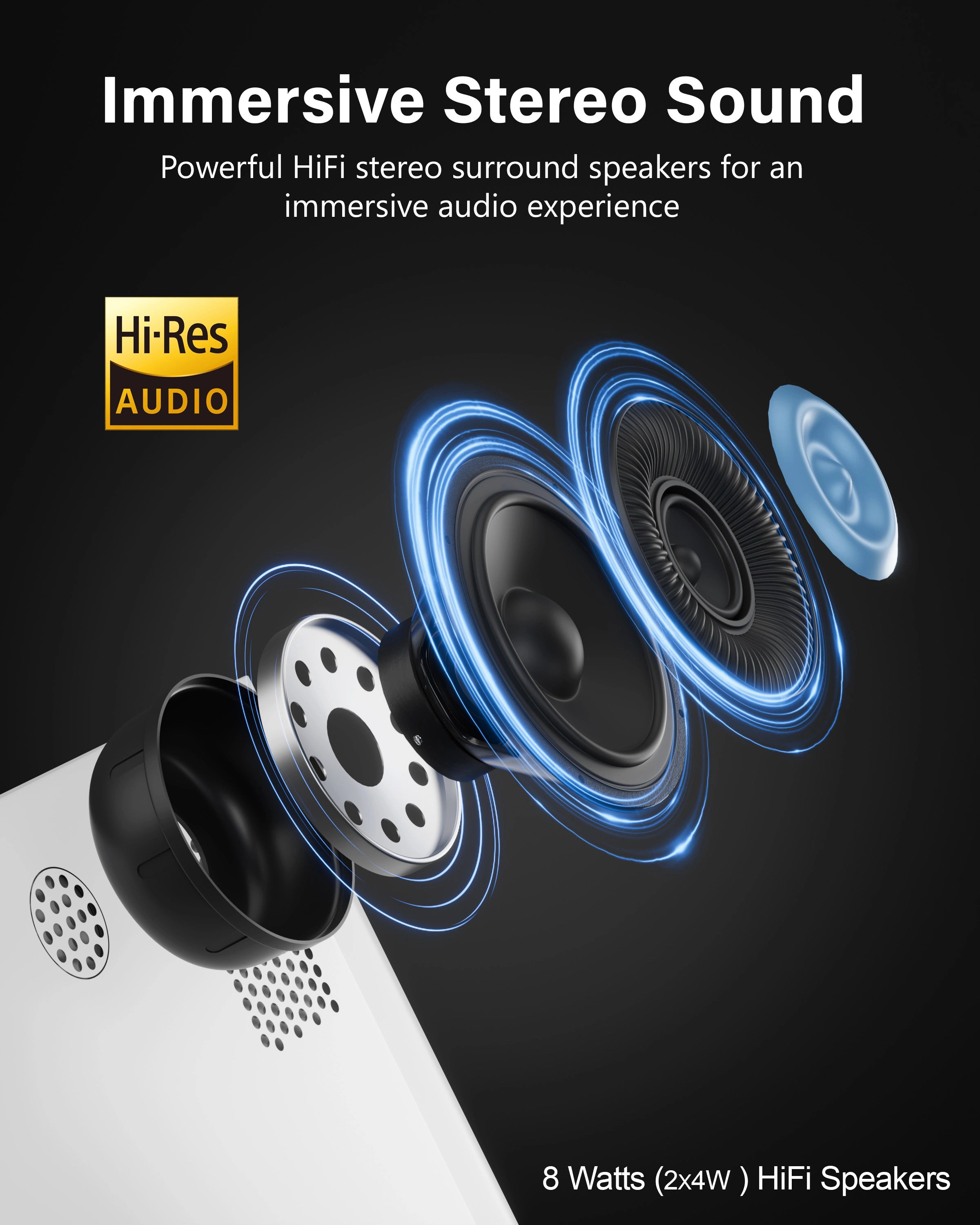 ▶ ENHANCED SOUND EXPERIENCE: Built-in HiFi stereo speakers (2×4W) deliver immersive audio. For a cinematic soundstage, you can also connect external Bluetooth speakers or headphones.