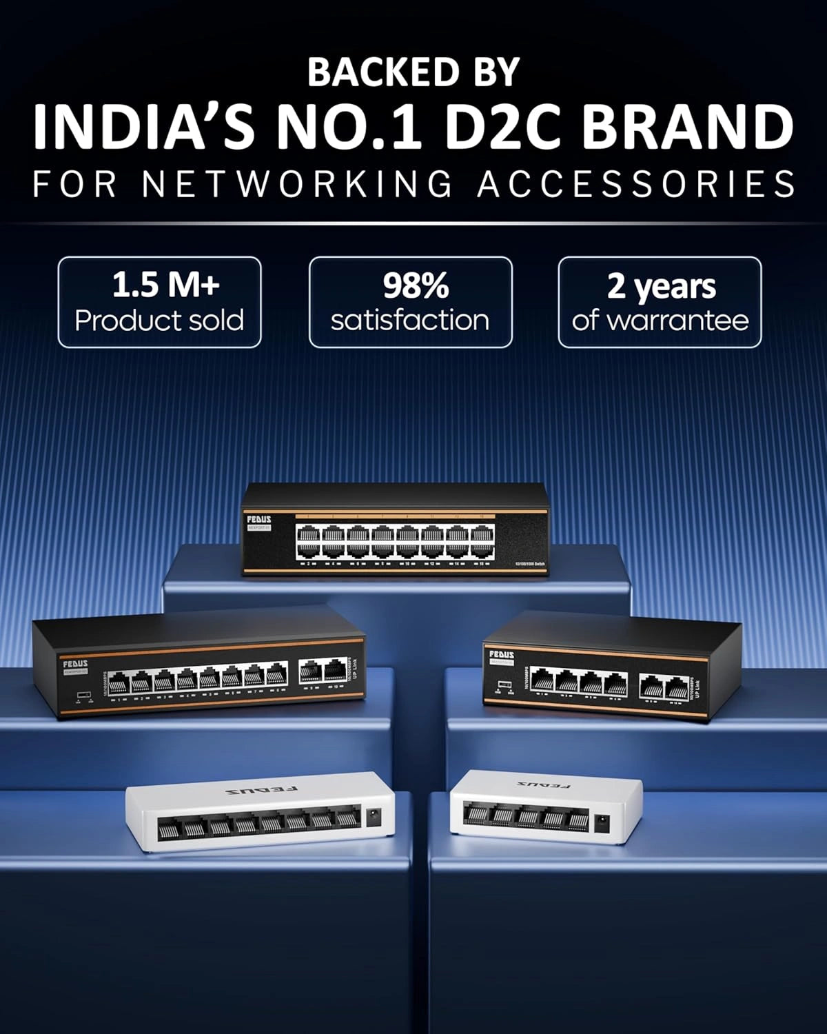 ▶ BACKED BY INDIA’S #1 D2C NETWORKING BRAND: Upgrade your network with absolute peace of mind. As India’s leading and most trusted D2C brand for IT hardware and networking accessories, FEDUS is committed to premium quality. Your purchase is protected by a solid 2-Year Warranty and lifetime expert customer support. Don't risk your expensive surveillance systems on generic, unreliable switches—trust the experts who power millions of Indian homes and businesses.