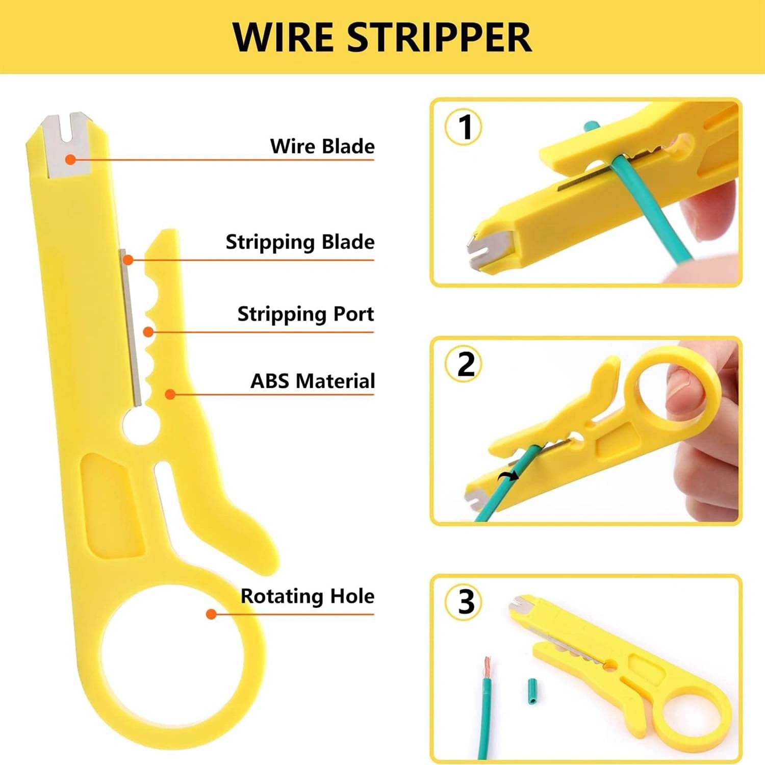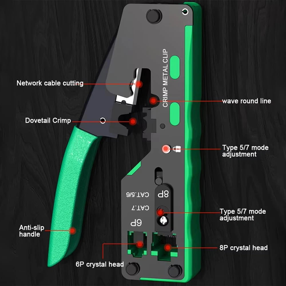 • ▶MULTIFUCTION PASSTHROUGH NETWORKING TOOL: RJ45 crimp tool crimper tool for 6P/8P Pass Through cat8, cat7, cat6, cat6A, cat5 and cat5e connectors plugs, suitable for 23AWG-28AWG cable (RJ11/RJ12 standard and RJ45 Tools Pass-Thru). Supports crimping of 4, 6, and 8-position modular connectors, including RJ11/RJ12 standard and RJ45 crimper tools pass-thru. Wire stripper, crimper, and cutter in one tool, designed for STP/UTP paired-conductor data cables