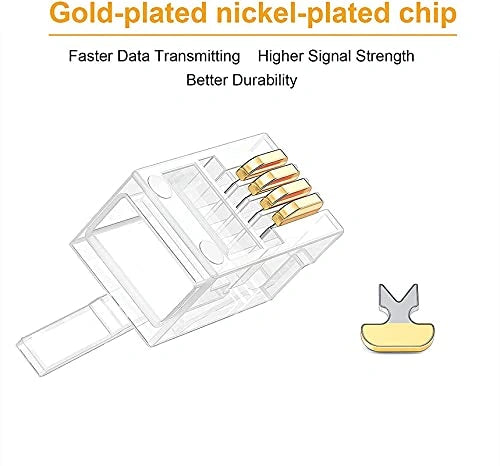 📞 CONVENIENT CONNECTION - Modular headset jack has clear plastic housing with pins purity of copper wire higher than 99.99% for Fast and accurate data transmission. 3 Micron gold plated pins provide better contact and transmission performance