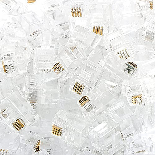 📞4P4C - 4 POSITION 4 CONDUCTOR - for telephone cables. 3 Prong design makes them compatible with both solid and stranded wires, more easily impact and will grip the wires tightly after crimping.