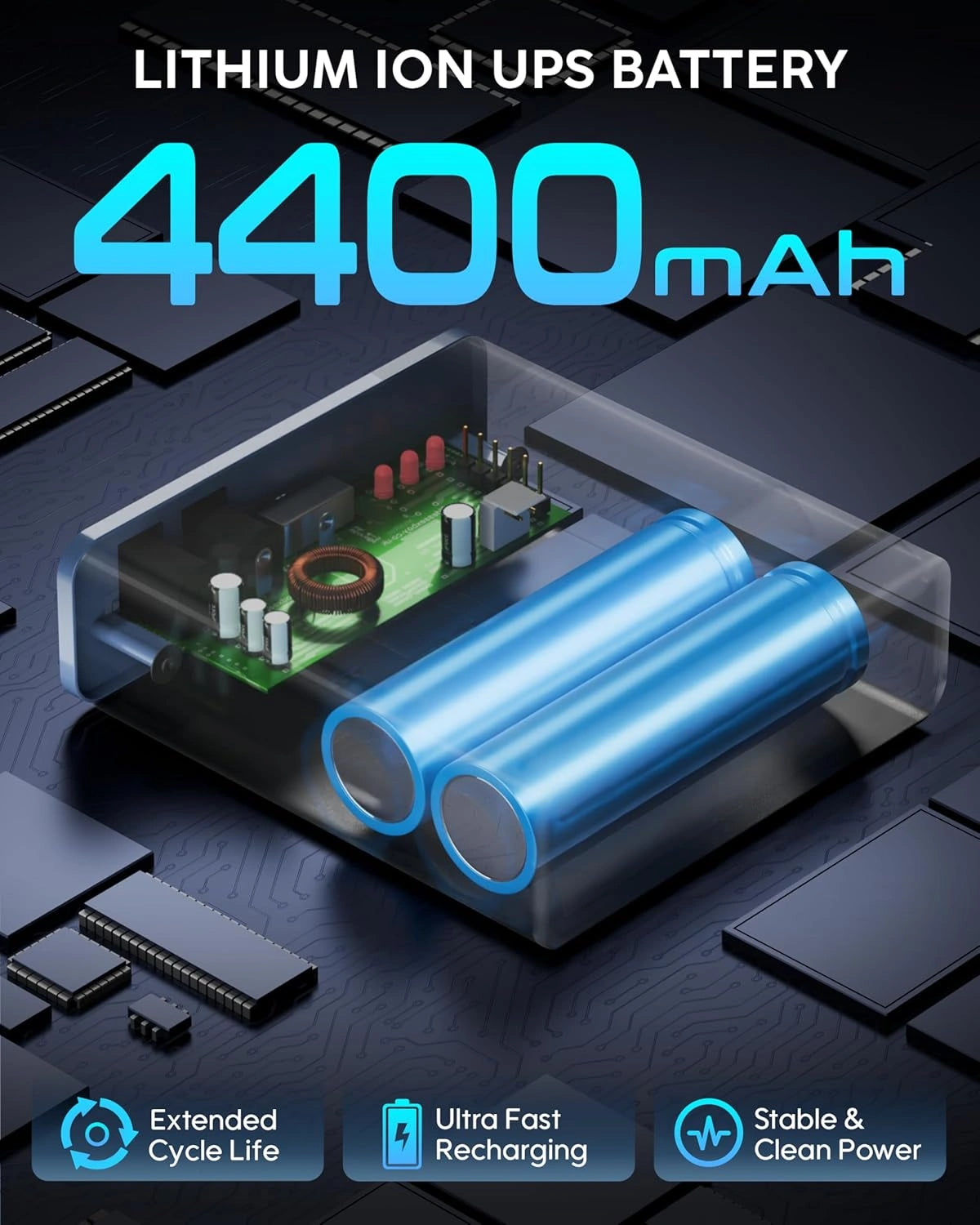 FEDUS Router UPS for Home Office, 12V 2A Support, 4400mAh Li-ion Battery Mini UPS for WiFi Router with Power Adapter, Uninterrupted Power Supply Smart Charging Compatible with TP-Link, D-Link, Netgear