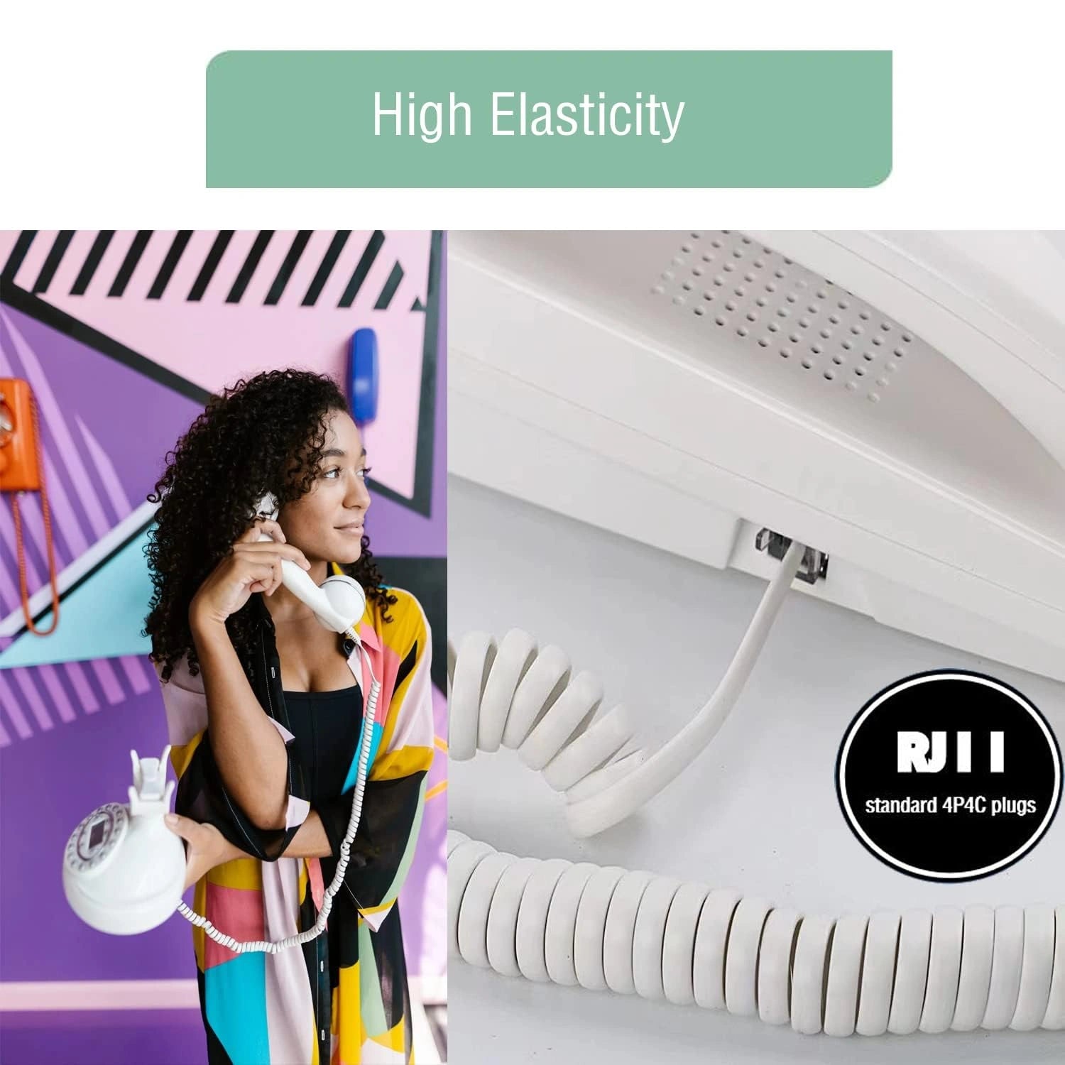 ▶EASY TO USE - Simply plug one end into the phone jack on the receiver & the other end into the telephone handset cord jack on your phone. NO COMPLICATED SETUP. Our long phone cord is designed with a UNIVERSAL FIT, making it COMPATIBLE WITH ANY DEVICE with a phone jack. Long cord makes it a perfect landline phone cord for the kitchen, office phone, and more.
