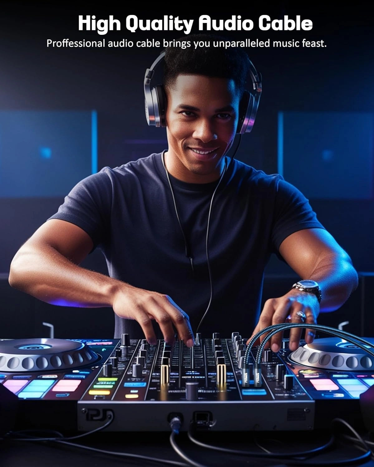 • ▶EXCELLENT SOUND: 20 AWG Oxygen-Free Copper, 24K gold-plated plugs, an oxidized aluminum shell, triple shielding, and low noise resistance eliminate interference and deliver pristine sound and noise shielding. There is no hum, no noise, and crystal-clear music. This high-quality, noise-free performance makes it an excellent choice for music lovers, live performances, recordings, and computer multimedia settings. 3.5mm to dual 1/4 cable is the best choice for studio or live performances.