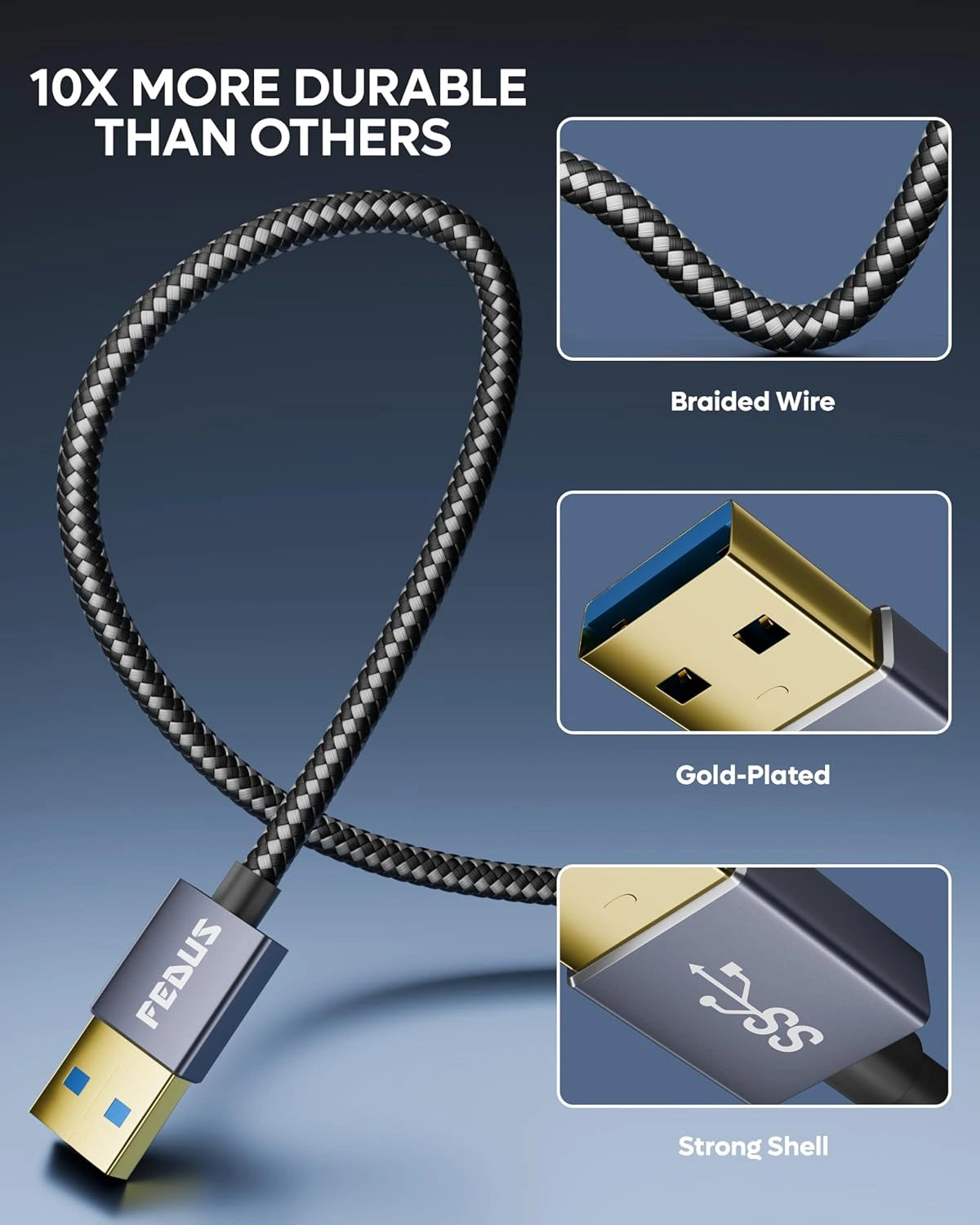▶TRUE USB 3.0 SUPERSPEED – 10X FASTER THAN USB 2.0: Stop wasting time with cables that only look like USB 3.0 but perform like slow 2.0 versions. Our Fedus cable is an Actual USB 3.0 Standard, delivering blazing-fast data transfer speeds up to 5Gbps. This is 10 times faster than the standard 480Mbps of USB 2.0, sync massive 4K movies or heavy data files in just seconds. Built with copper cores, eliminates data bottlenecks, providing a smooth experience for high-end SSDs and hard drive enclosures
