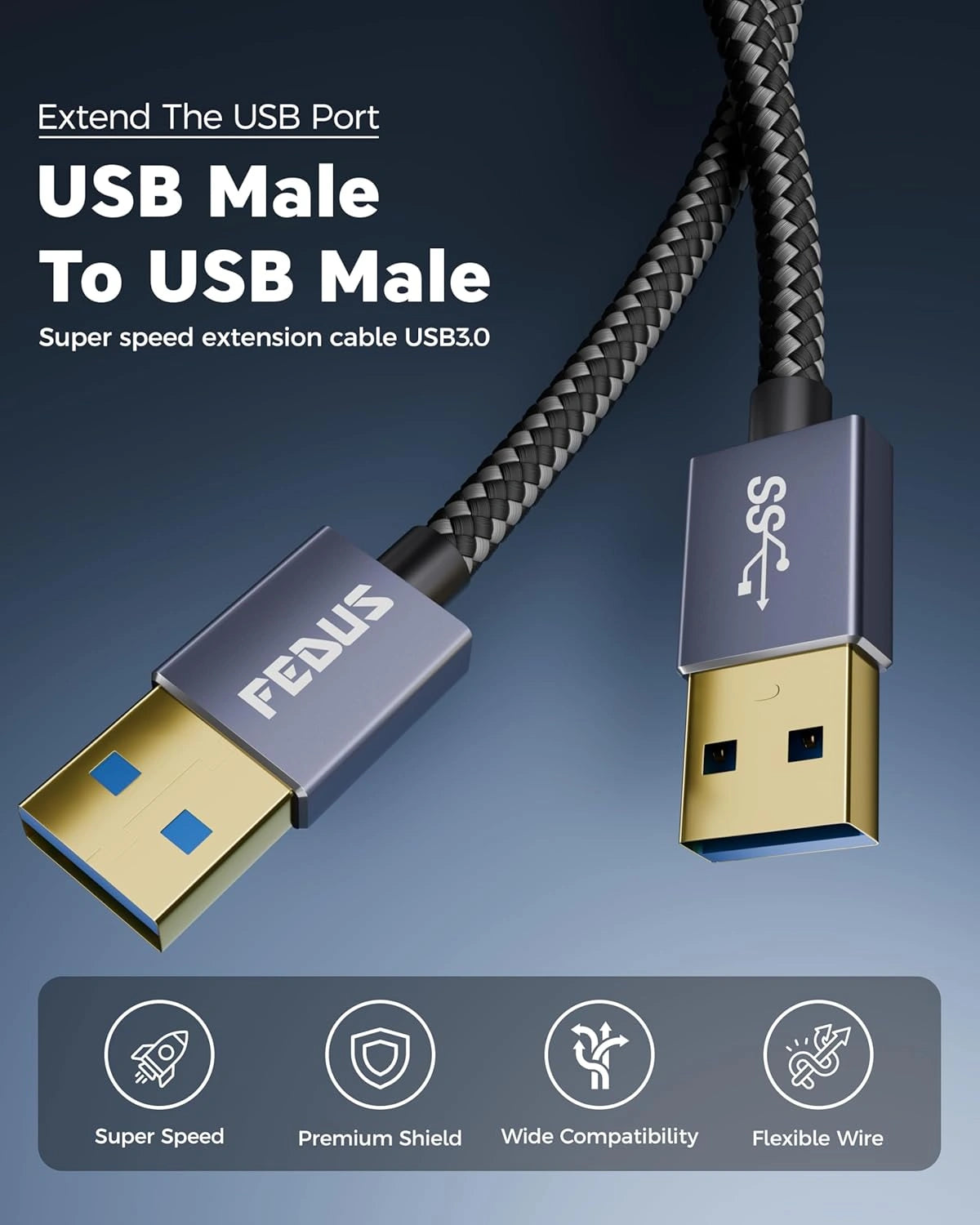FEDUS USB 3.0 Male to Male Cable High-Speed 5Gbps Data Transfer, Premium Nylon Braided USB to USB Cord 24K Gold-Plated Connectors for Hard Drive Enclosure,Laptop Cooling Pad, Smart TV, DVD