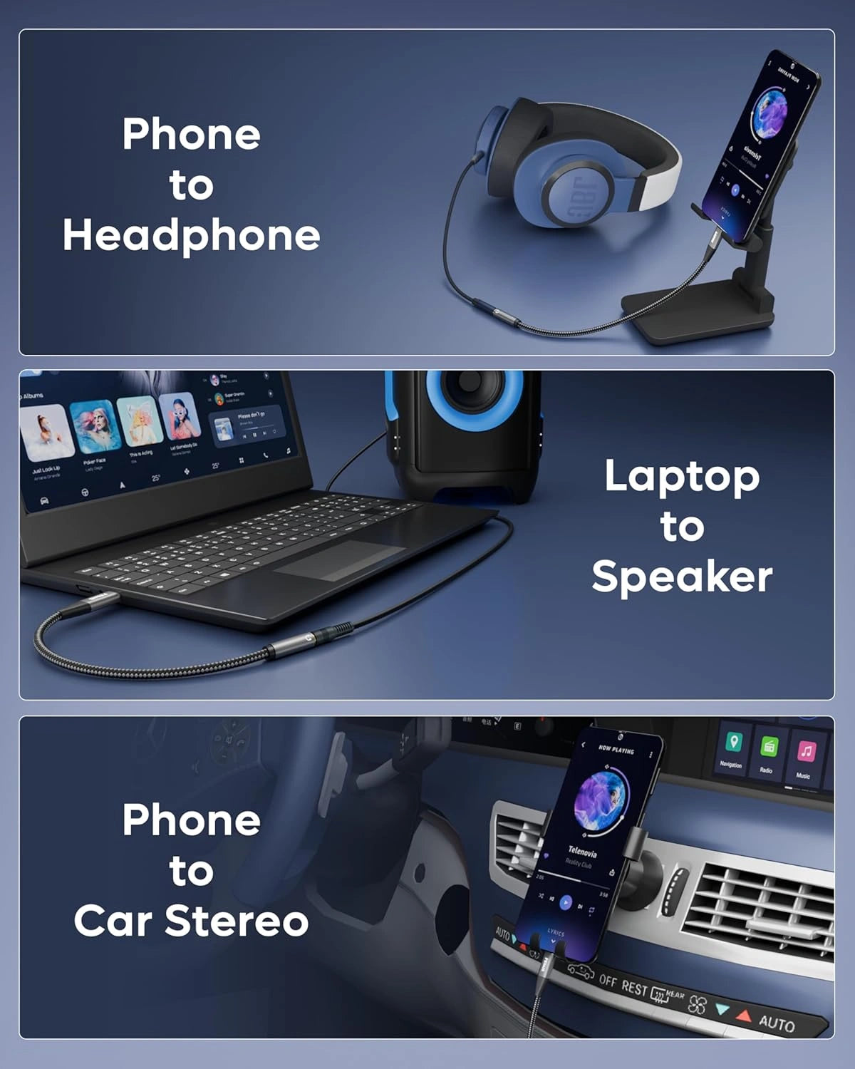 Universal Compatibility: Our USB-C to 3.5mm adapters, aux cables, and audio dongles are compatible with iPhone 16/15 series, Samsung Galaxy S24/S23/S22 Ultra, iPad Pro, headphones, speakers, car stereos, and more.